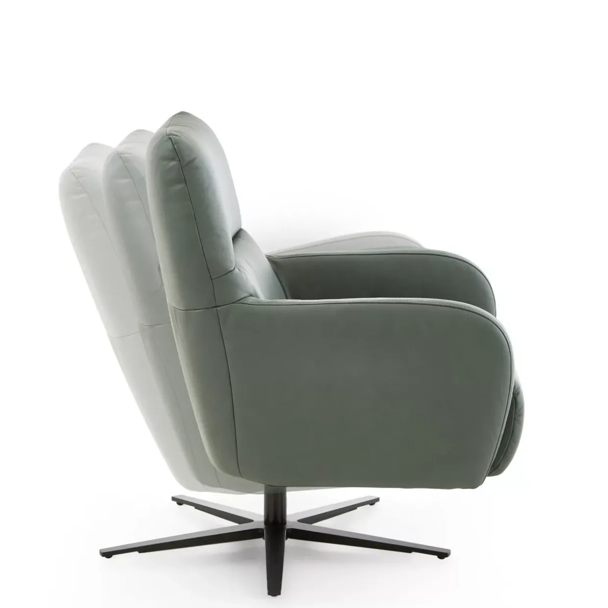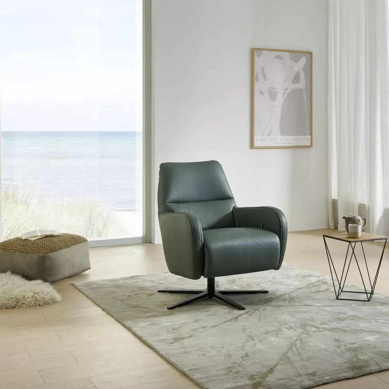Ein passender Hocker kann auf Anfrage gegen Mehrpreis erworben werden, um das Entspannungserlebnis abzurunden. Der Sessel besticht zudem durch seinen Sternfuß, der ihm einen stabilen Stand verleiht. Ein Möbelstück, das sowohl im Design als auch in der Funktion überzeugt.