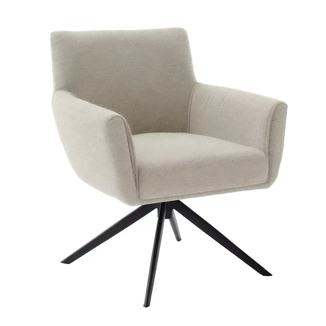 Ein 360 Grad drehbarer Sessel mit Nivellierungsfunktion begeistert durch seine Vielseitigkeit. Der Wilson Sessel Armlehne XL vereint konventionellen Stil mit moderner Funktionalität. Die edle Kombination aus cremefarbenem Stoff und schwarz matt lackiertem Metall verleiht jedem Raum eine elegante Note. Die Fußform in Stativgestell-Design sorgt für Stabilität und einen festen Stand. Der verwendete Stoff aus Polyester ist nicht nur pflegeleicht, sondern auch langlebig. Die lackierte Oberfläche des Metalls unterstreicht die hochwertige Verarbeitung und den ästhetischen Anspruch.Für höchsten Sitzkomfort sorgt die Polsterung mit Taschenfederkern, die sich optimal an Ihren Körper anpasst und langes Sitzen angenehm macht. Das Material aus Stoff und Metall harmoniert perfekt und bietet sowohl visuell als auch haptisch ein ansprechendes Erlebnis.Dieser Sessel ist nicht nur ein Möbelstück, sondern ein Statement für stilbewusste Einrichtung. Die durchdachte Kombination aus Design und Funktion macht ihn zu einem unverzichtbaren Begleiter in jedem Wohn- oder Arbeitsbereich. Tauchen Sie ein in ein neues Sitzerlebnis, das Funktionalität und Design auf höchstem Niveau vereint. Lassen Sie sich von der durchdachten Balance aus Komfort und Stil begeistern.