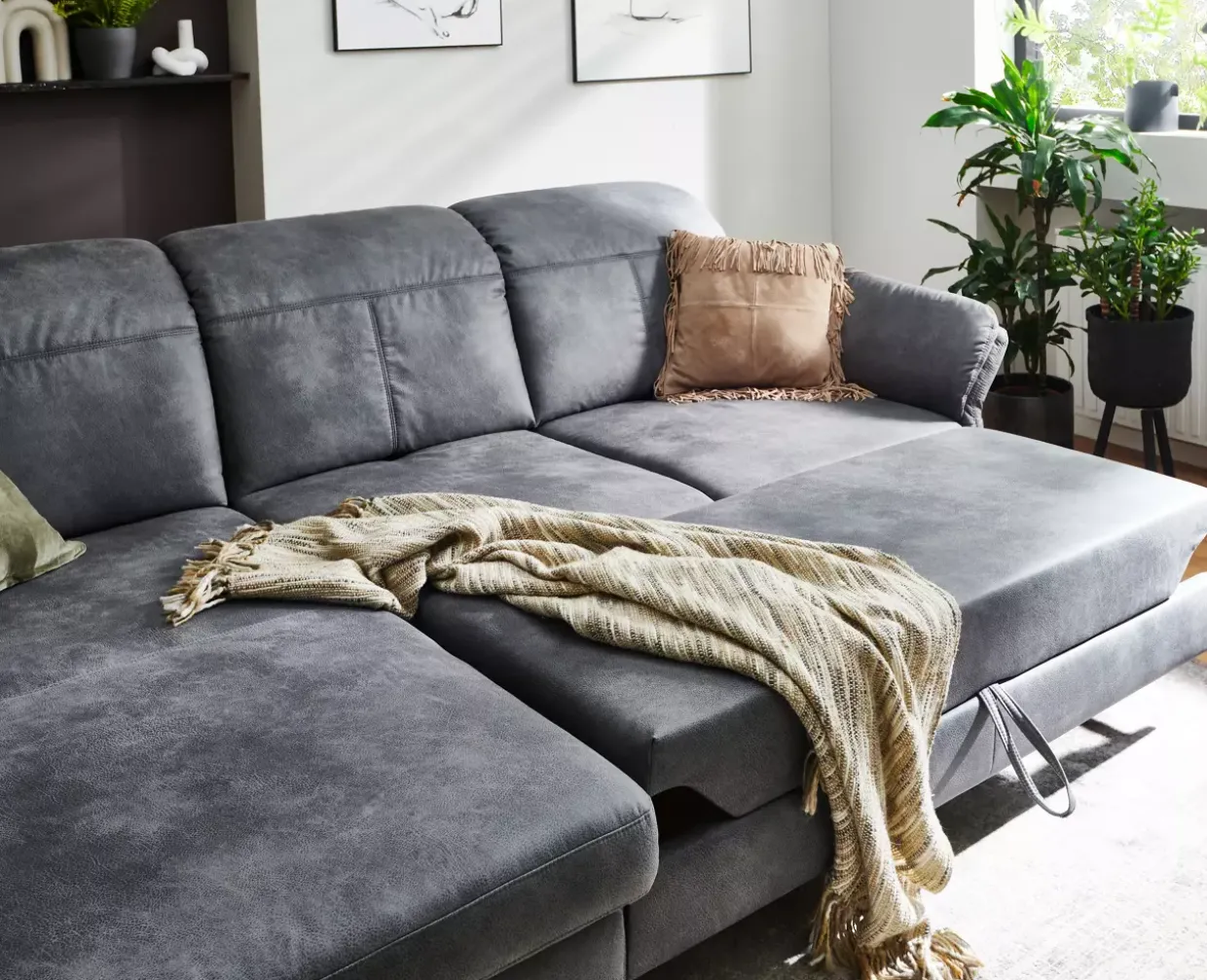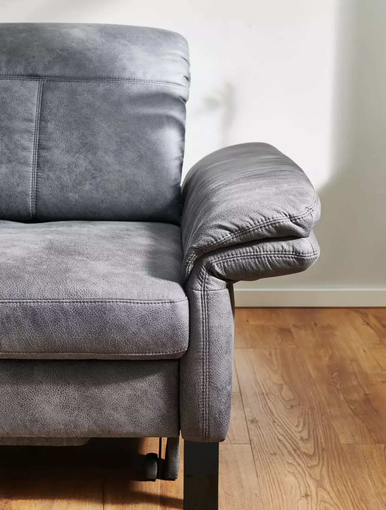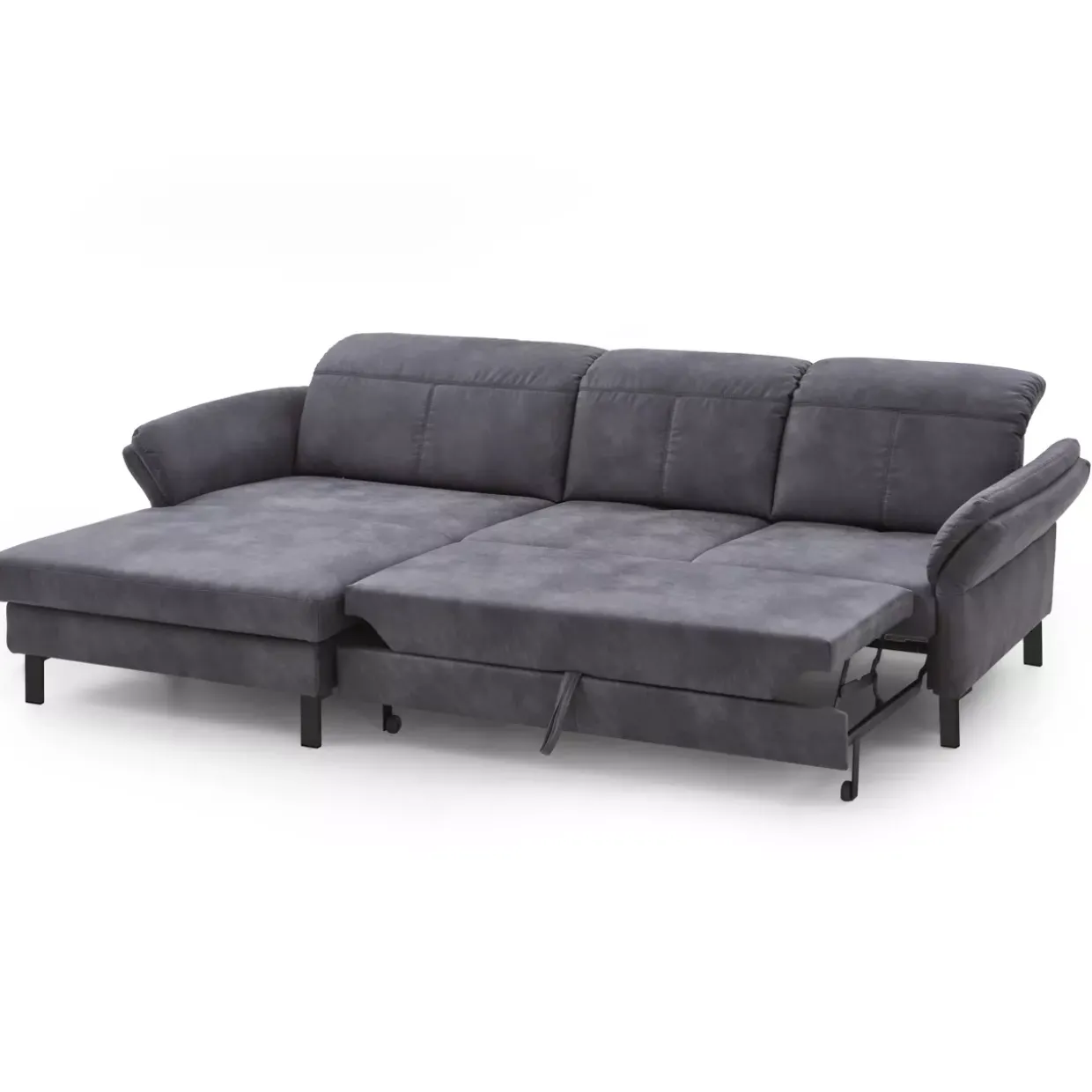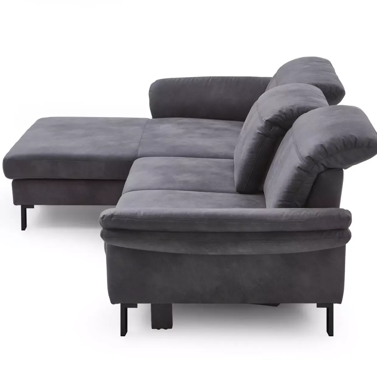 Entdecken Sie die perfekte Kombination aus Komfort und Funktionalität mit der Shelly Polstergarnitur. Die Armteilverstellung bietet Ihnen die Flexibilität, Ihren Sitzkomfort individuell anzupassen. Stilvoll in konventionellem Design gehalten, harmoniert diese Garnitur ideal mit modernen und klassischen Einrichtungen. Die Farben Savanna Grey und Schwarz Matt verleihen dem Wohnzimmer eine zeitlose Eleganz.Gefertigt aus hochwertigem Stoff und robustem Metall, vereint die Garnitur Langlebigkeit und Ästhetik. Die Bettfunktion als Querschläfer ermöglicht es, im Handumdrehen einen gemütlichen Schlafplatz zu schaffen, während die Kopfteilverstellung weitere individuelle Komfortoptionen bietet. Ein Highlight ist der Longchair maxi, der nicht nur großzügigen Stauraum bietet, sondern auch mit einer manuell einstellbaren Kopfteilverstellung ausgestattet ist.Die Polsterung aus Federkern und PUR-Schaum verspricht einen angenehmen Sitzkomfort, unterstützt durch feste Rückenkissen und eine legere Polsterung. Die echten Bezüge auf der Liegefläche und dem Rücken runden das durchdachte Design ab und sorgen für eine einheitliche Optik. Eine Polstergarnitur, die durch durchdachte Details und hochwertige Materialien überzeugt, bereichert jeden Wohnraum um ein stilvolles und funktionales Möbelstück. Genießen Sie die vielfältigen Möglichkeiten, die Ihnen diese Garnitur bietet.