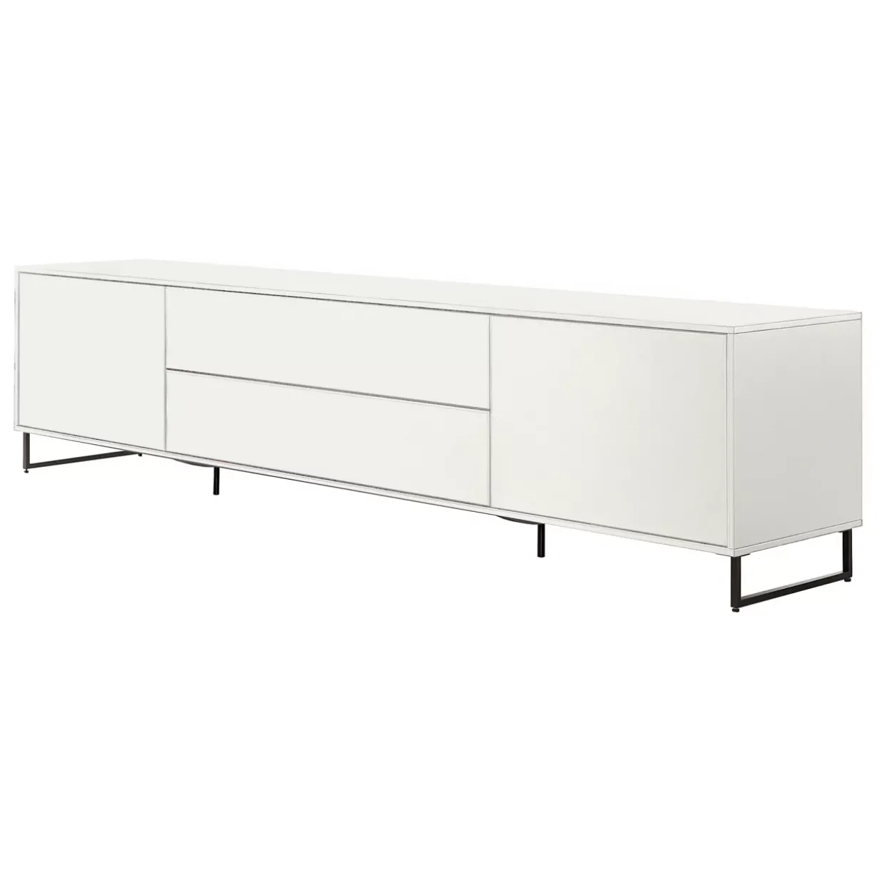 Erleben Sie Design und Funktion in perfekter Harmonie. Das Sideboard, gefertigt aus hochwertigen Materialien wie Holz, Holzwerkstoffen und Metall, steht auf stabilen Kufen und ist mit einem modernen Abdeckblatt ausgestattet, das über einen Kabeldurchlass verfügt. So bleibt der Raum aufgeräumt und Kabelsalat gehört der Vergangenheit an.