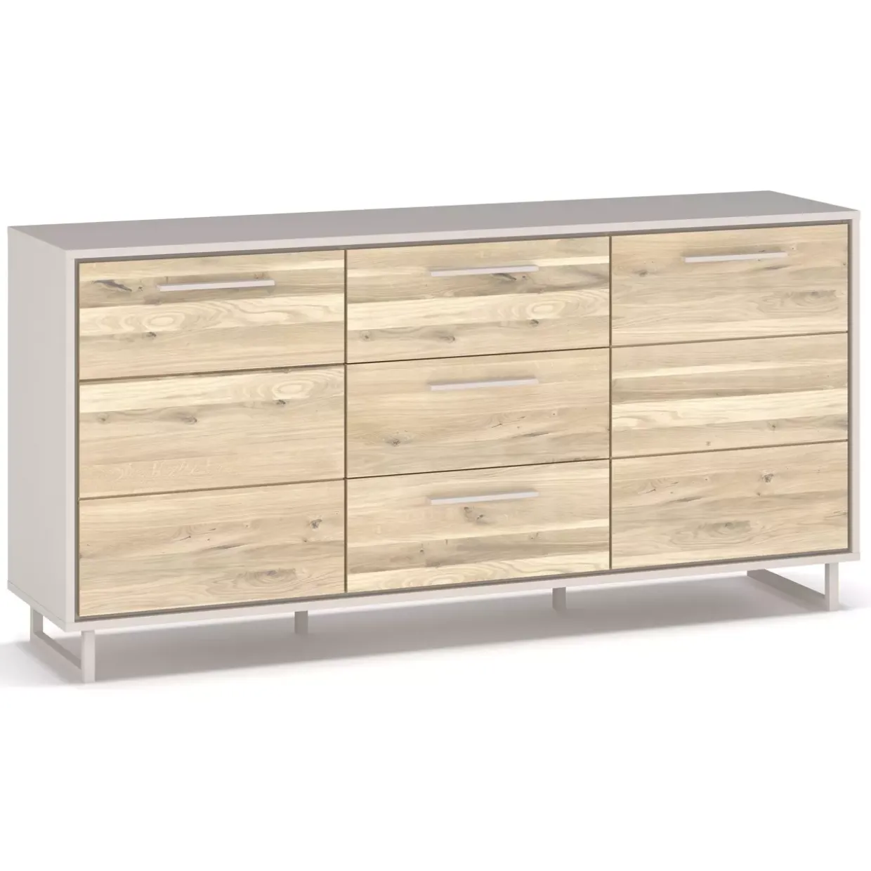 Eine beeindruckende Kombination aus Funktionalität und Design bietet das Sideboard in der Ausführung Eiche. Der konventionelle Stil wird durch die kreidefarbene Oberfläche harmonisch ergänzt und verleiht jedem Raum eine elegante Note. Die massive Eiche bianco unterstreicht die Hochwertigkeit des Möbelstücks und sorgt für Langlebigkeit.