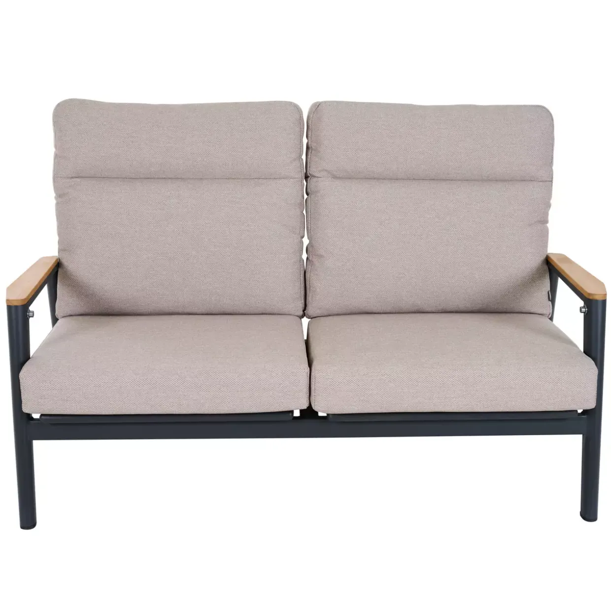 Die Materialkombination aus Stoff und Metall sorgt für Langlebigkeit und Stabilität, während das Design der Bank eine moderne und zeitlose Ausstrahlung besitzt. Diese Gartenbank ist ideal für alle, die Wert auf Qualität und stilvolle Gestaltung legen.