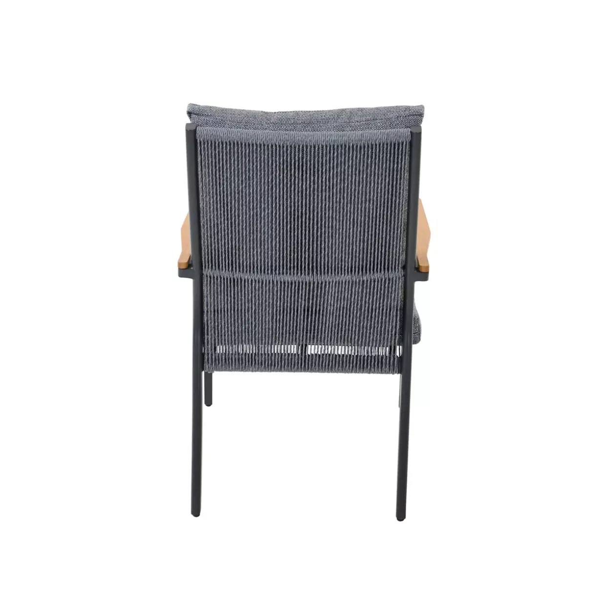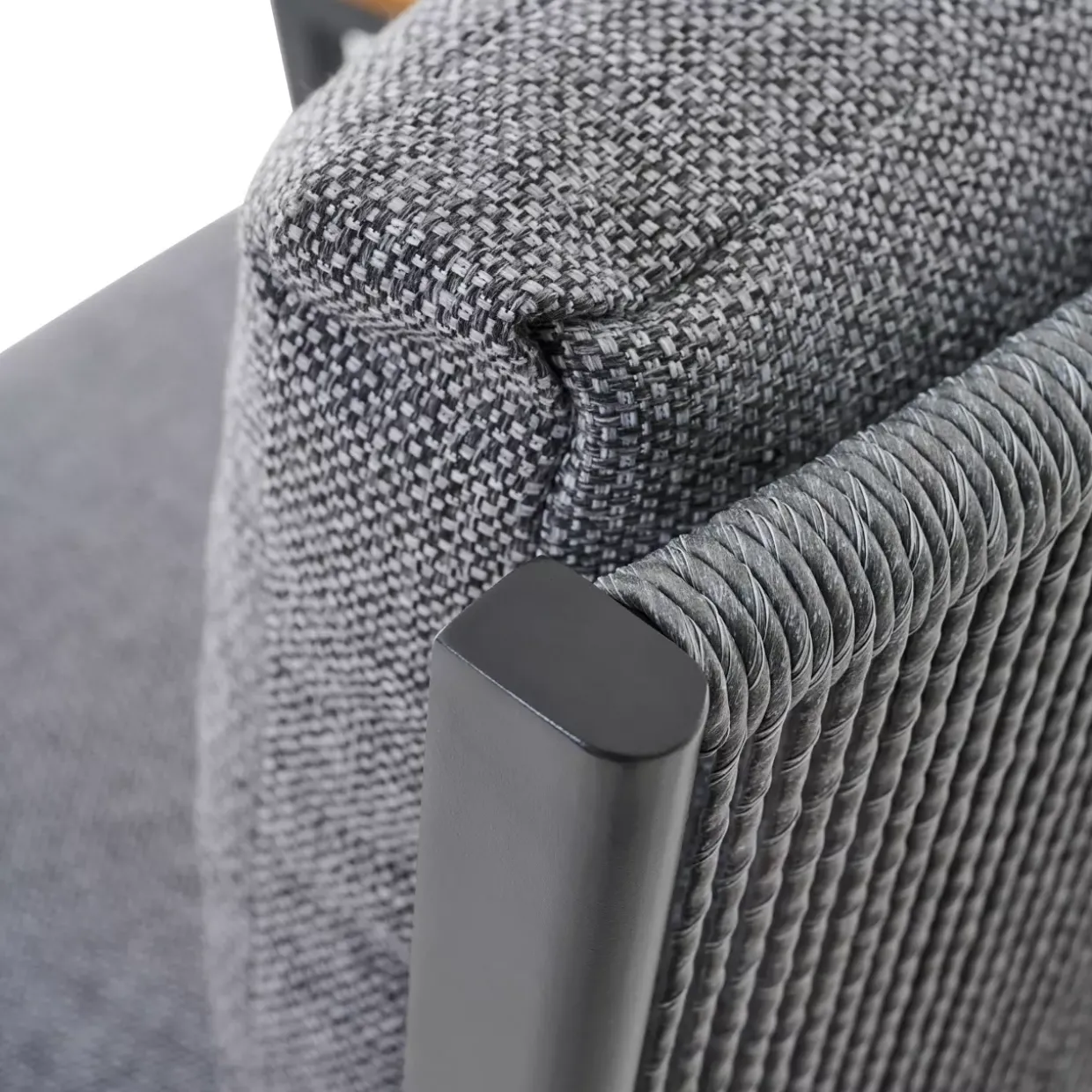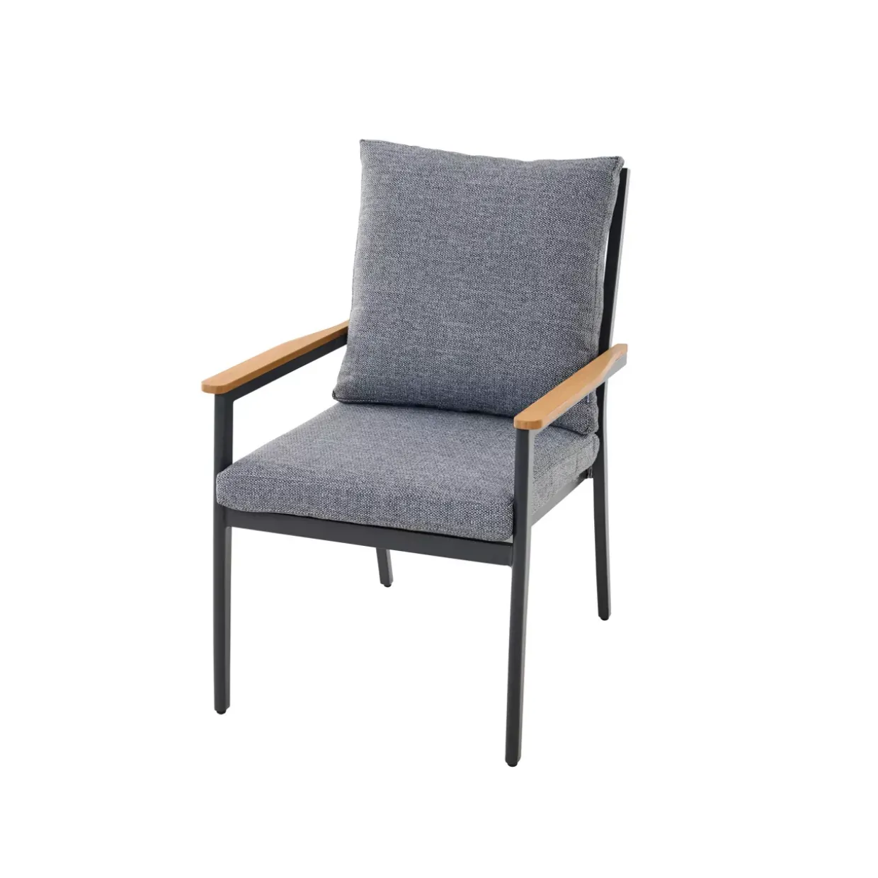 In einem zeitlosen Loft-Stil präsentiert sich dieser Sessel, der durch seine elegante und minimalistische Form besticht. Die matte anthrazitfarbene Oberfläche verleiht ihm eine moderne und zugleich dezente Ausstrahlung. Ganzjährig bereichert er Ihr Interieur und fügt sich nahtlos in verschiedene Wohnkonzepte ein. Das stabile 4-Fußgestell bietet eine solide Basis und sorgt für sicheren Stand, während die Verwendung von hochwertigem Aluminium und Holz eine harmonische Kombination aus Robustheit und natürlicher Eleganz schafft. Die sorgfältige Materialauswahl garantiert nicht nur Langlebigkeit, sondern auch eine angenehme Haptik und Ästhetik.Dieser 4-Fuß-Stuhl vereint Funktionalität mit stilvollem Design und wird so zum idealen Begleiter in jedem Raum. Egal, ob im Wohnzimmer, im Büro oder im Wintergarten – die Vielseitigkeit dieses Sessels passt sich Ihren Bedürfnissen an und bietet stets den gewünschten Komfort. Die Kombination aus Metall und Holz sorgt nicht nur für ein ansprechendes Erscheinungsbild, sondern auch für eine einfache Pflege. Dieser Sessel ist nicht nur ein Möbelstück, sondern ein Ausdruck von Stil und Individualität, der Ihr Zuhause auf dezente Weise bereichert. Lassen Sie sich von der klaren Formensprache und den hochwertigen Materialien inspirieren.