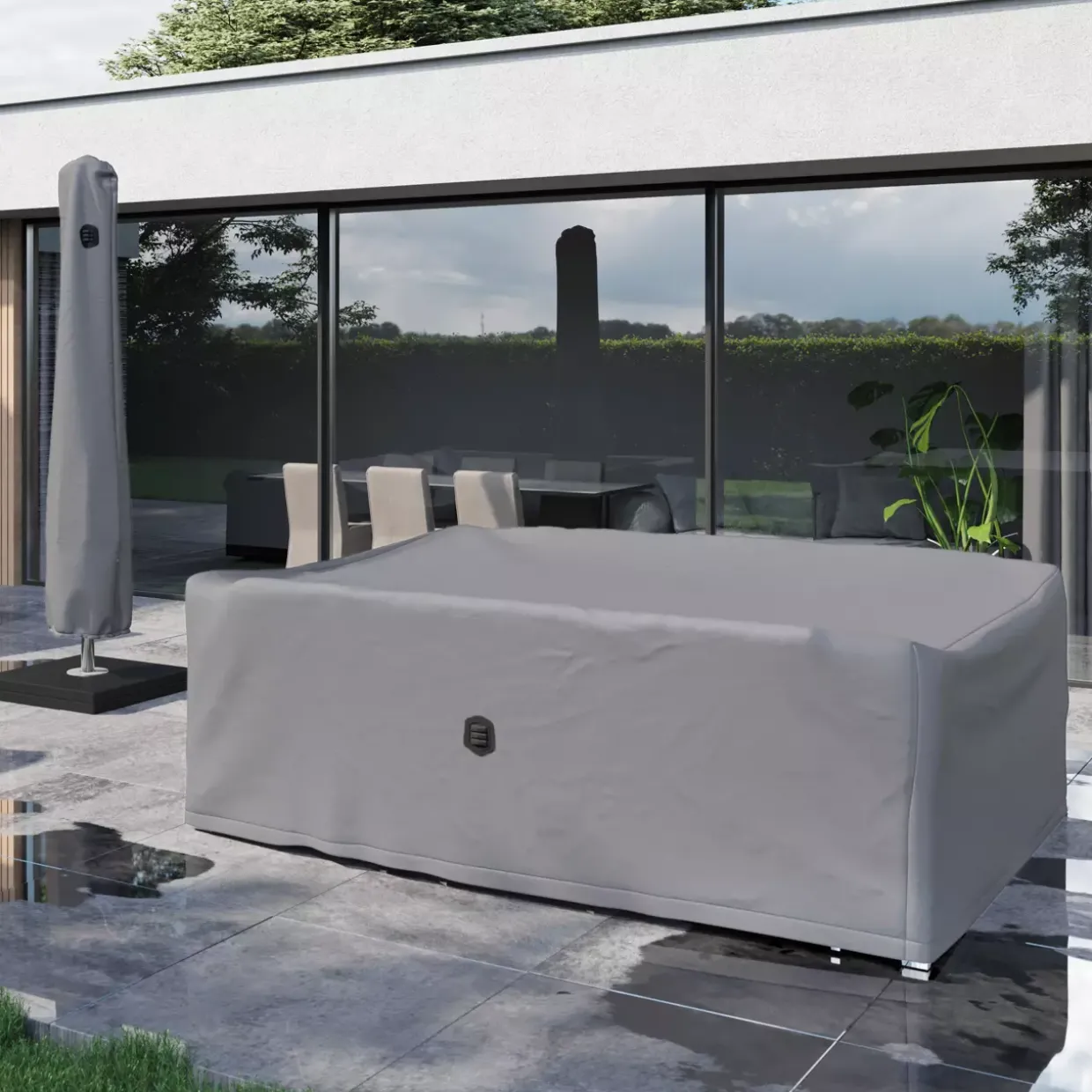Sorgfältig aus hochwertigem Textil gefertigt, bietet das Material eine robuste und langlebige Lösung für den Schutz Ihrer Sitzgruppe. Unabhängig von der Jahreszeit ist diese Hülle darauf ausgelegt, Ihre Möbel vor den Herausforderungen der Natur zu bewahren. Regen, Sonne oder Wind – die Schutzwirkung bleibt konstant und zuverlässig.