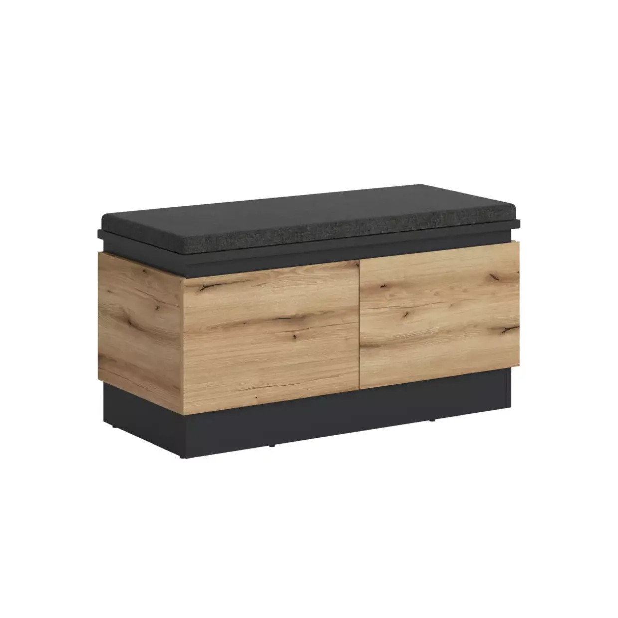Ein sanftes Soft-Close-System ist das Herzstück der modernen Sitzbank Corte. Diese clevere Funktion sorgt dafür, dass die zwei Drehtüren leise und sanft schließen, was den Alltag angenehmer gestaltet. Hergestellt aus hochwertigem Holzwerkstoff, bietet die Sitzbank nicht nur Stabilität, sondern auch eine elegante Ästhetik, die sich nahtlos in zeitgenössische Wohnräume einfügt.Der warme Ton von Coast Evoke Eiche verleiht der Sitzbank eine natürliche Ausstrahlung, die für ein behagliches Ambiente sorgt. Die Kombination aus Funktionalität und Stil wird durch die mitgelieferten Kissen in Grau und Kosmos Grau ergänzt, die sowohl Komfort als auch einen Hauch von Luxus bieten.Die Sitzbank ist nicht nur ein praktisches Möbelstück, sondern auch ein stilvolles Element, das Ihren Raum aufwertet. Mit der Wahl der Drehtüren wird ein klassisches Design mit moderner Funktionalität kombiniert. Diese Sitzbank ist ideal für alle, die Wert auf eine harmonische Einrichtung legen und dabei auf Komfort nicht verzichten wollen.Die Vielseitigkeit der Bank zeigt sich in der Möglichkeit, sie in verschiedenen Wohnbereichen wie Flur, Schlafzimmer oder Wohnzimmer zu integrieren. Die Corte Sitzbank vereint zeitgemäße Eleganz mit durchdachter Funktionalität und ist ein Gewinn für jede Einrichtung.