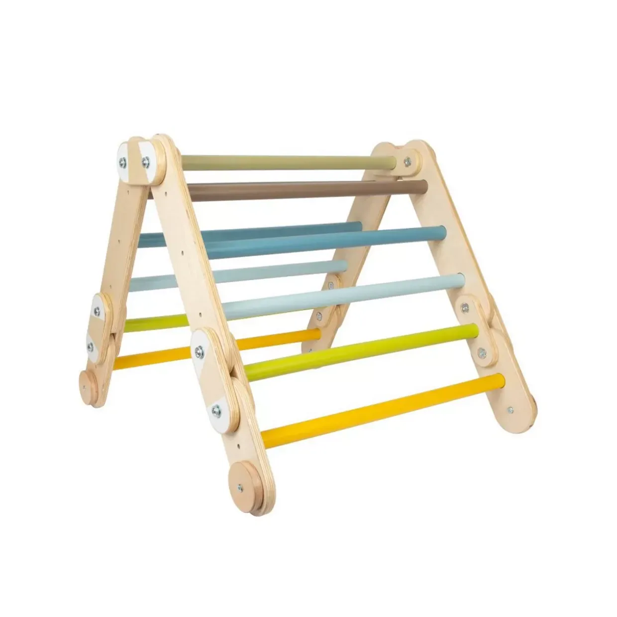 Das moderne Design des Kletterdreiecks Adventure zieht sofort die Blicke auf sich. Mit seiner klaren Formensprache fügt es sich harmonisch in jede zeitgemäße Umgebung ein. Gefertigt aus hochwertigem Holz, vereint es natürliche Wärme mit robustem Aufbau und gewährleistet so Stabilität und Sicherheit. Ein Kletterdreieck bietet Kindern die perfekte Möglichkeit, ihre motorischen Fähigkeiten zu entwickeln. Während sie spielerisch die Hürden überwinden, schulen sie Gleichgewichtssinn und Koordination. Durch den spielerischen Aspekt des Kletterns werden zudem Kreativität und Fantasie angeregt, was die geistige Entwicklung fördert.Das Holzmaterial überzeugt nicht nur durch seine Langlebigkeit, sondern auch durch seine umweltfreundlichen Eigenschaften. Es ist angenehm anzufassen und sorgt für ein natürliches Spielgefühl, das Kinder lieben. Ein weiterer Vorteil des Kletterdreiecks ist seine Vielseitigkeit: Es kann sowohl drinnen als auch draußen genutzt werden und bietet somit zu jeder Jahreszeit eine spannende Beschäftigung.Abschließend lässt sich sagen, dass ein Kletterdreieck nicht nur ein Spielgerät ist, sondern auch ein wertvolles Hilfsmittel zur Förderung der kindlichen Entwicklung. Es verbindet Funktionalität und Design auf einzigartige Weise und bereichert das Spielzimmer oder den Garten auf stilvolle Art.