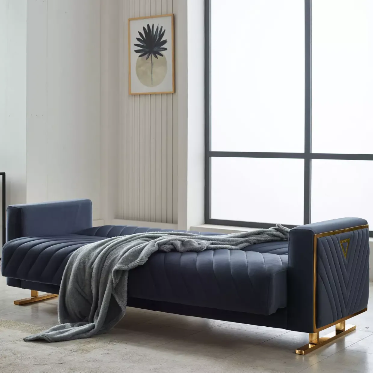 Vielseitigkeit wird bei diesem Möbelstück großgeschrieben. Der integrierte Stauraum mit Bettkasten bietet ausreichend Platz für Kissen, Decken und andere Utensilien. Zudem wird der 3-Sitzer mit drei dekorativen Zierkissen geliefert, die das stilvolle Erscheinungsbild abrunden.