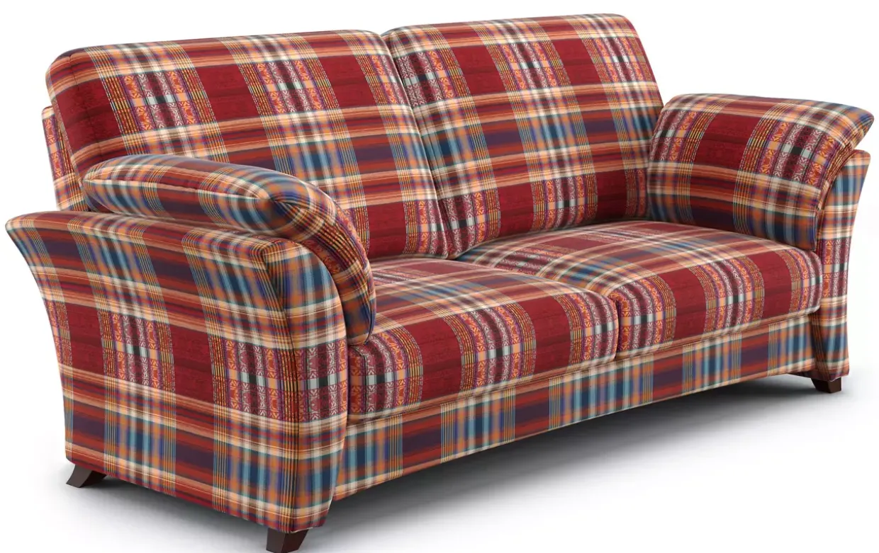 Ein Hauch von Retro-Charme erweckt das Sydney Sofa zum Leben. Die rot karierte Oberfläche aus hochwertigem Stoff zieht alle Blicke auf sich und verspricht eine nostalgische Atmosphäre in Ihrem Wohnzimmer. Buche, bekannt für ihre Robustheit und Eleganz, bildet das massive Gestell dieses erlesenen Möbelstücks. Die maronfarbige Oberfläche der Buche harmoniert perfekt mit dem karierten Stoff und verleiht dem Sofa eine zeitlose Ausstrahlung.