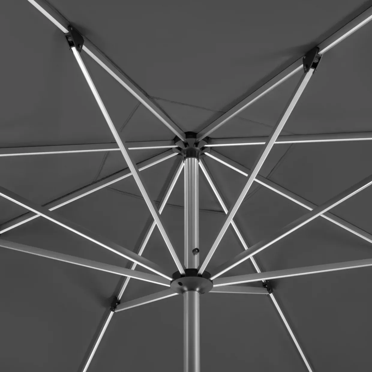 Die großzügige Spannweite des Modells Santorini sorgt dafür, dass Sie ausreichend Schutz vor intensiver Sonneneinstrahlung genießen können. Dieser Sonnenschirm ist besonders geeignet für Terrassen und Gärten, in denen sowohl Funktionalität als auch Ästhetik gefragt sind. Die Verbindung von Materialien sorgt für Stabilität und eine lange Lebensdauer, selbst bei wechselnden Wetterbedingungen.