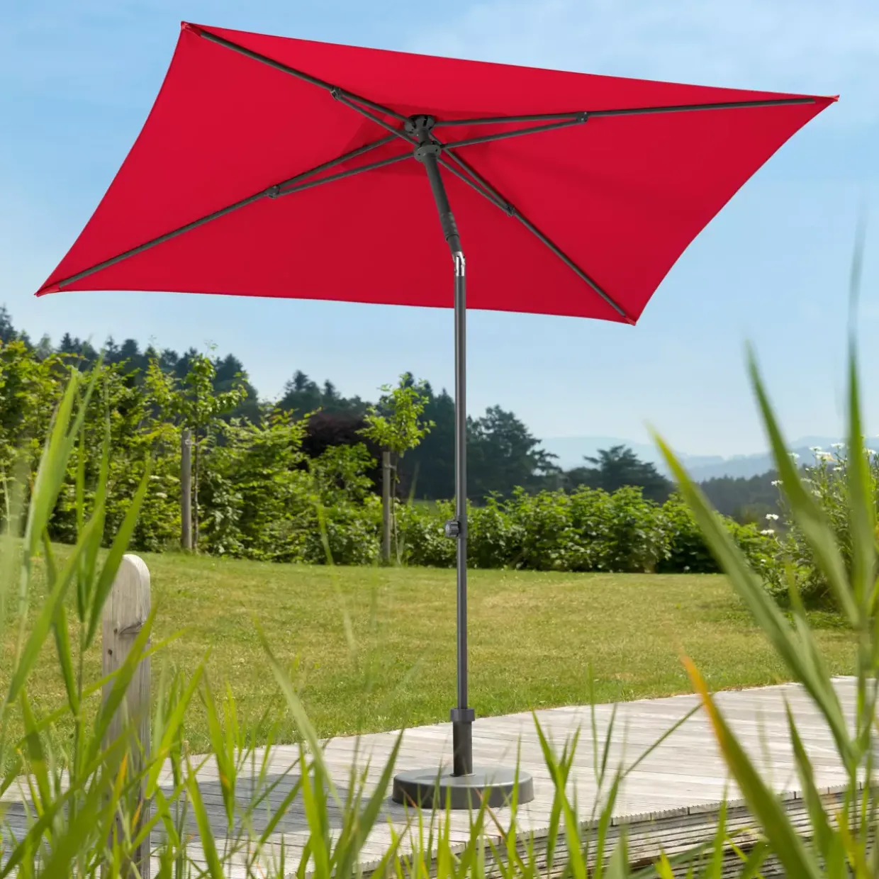 Anthrazit und Rot verleihen diesem modernen Sonnenschirm ein elegantes und zugleich lebendiges Erscheinungsbild. Das Modell Sevilla, mit den Maßen 240×140, vereint stilvolles Design mit Funktionalität und ist eine ausgezeichnete Wahl für den Außenbereich. Gefertigt aus einer hochwertigen Kombination von Kunststoff und Metall, verspricht dieser Sonnenschirm Langlebigkeit und Stabilität.