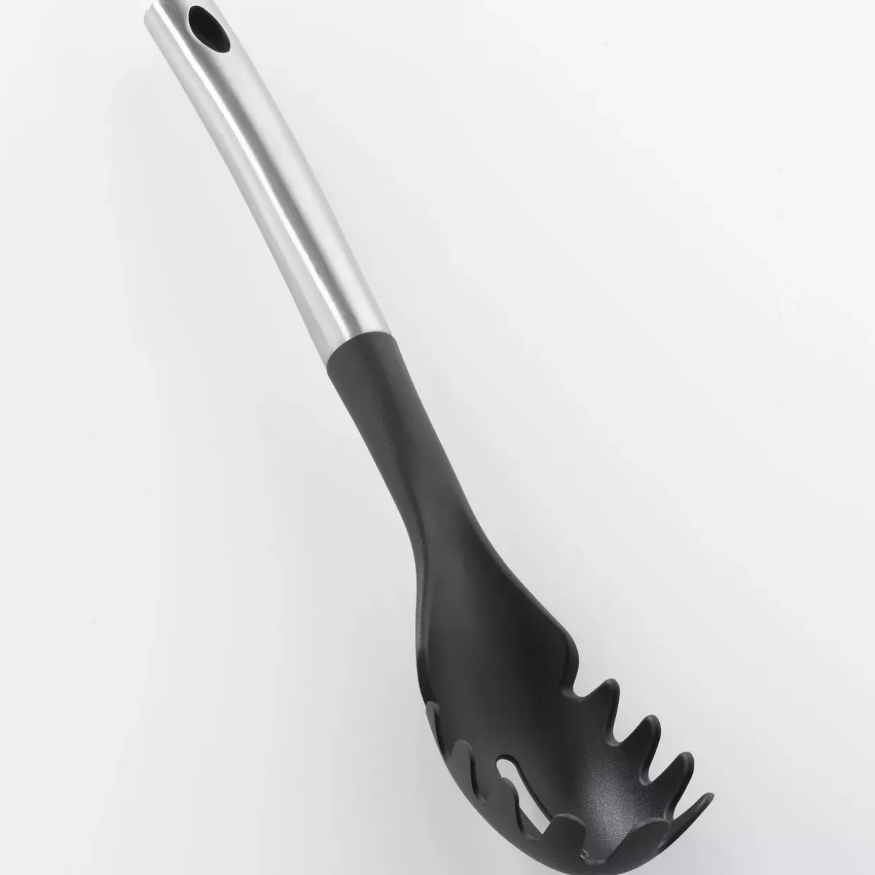 Durch die sorgfältige Auswahl der Materialien wird eine hohe Funktionalität mit ästhetischem Anspruch vereint. Die schlichte Farbgebung in Edelstahl und Schwarz macht den Spaghettiheber zu einem dezenten, aber stilvollen Küchenhelfer.