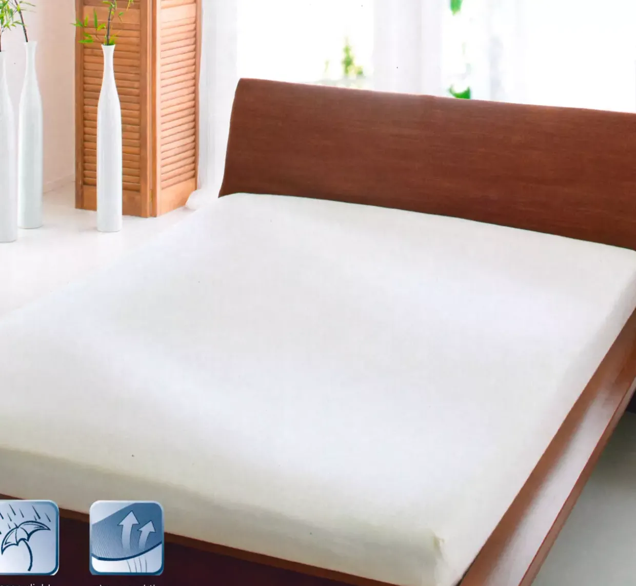 Konfektion: mit Jersey-Umrandung und Rundumgummi; Das wasserdichte Premium Spannbetttuch mit PET-Membrane zeichnet sich durch besondere Atmungsaktivität aus. Die Membrane wird mit einem speziellen, schonenden Klebeverfahren einseitig auf einen hochwertigen Baumwollflanell aufgeklebt. Dieses Klebeverfahren gewährleistet, dass der Kleber die Atmungsaktivität der Membrane nicht beeinträchtigt. 100% wasserdicht ist diese Auflage in besonderen Situationen unentbehrlich und sorgt durch ihre besondere Atmungsaktivität für ein optimales Schlafklima. atmungsktiv und wasserdicht; umweltschonend sauerstoffgebleicht; mit besonders feiner, atmungsaktiver Membrane – Ret = 20; Rundumgummi für perfekten Sitz; pflegeleicht und strapazierfähigEin Hauch von Modernität und Funktionalität vereint sich im Spannbetttuch ProNight. Die rechteckige Form passt sich perfekt jeder Matratze an und sorgt für einen makellosen Sitz. Gefertigt aus hochwertiger Naturfaser, bietet dieses Spannbetttuch eine atmungsaktive und wasserdichte Oberfläche, die den Schlafkomfort spürbar erhöht. Ganzjährig einsetzbar, überzeugt das Spannbetttuch durch die Kombination der Gewebearten Flanell und Jersey. Diese Materialien verleihen ihm eine besonders weiche und anschmiegsame Haptik. Das schlichte Uni-Design in der Farbe Weiß fügt sich harmonisch in jedes Schlafzimmerambiente ein und unterstreicht den modernen Stil. Zertifiziert mit dem Ökotex Standard 100, garantiert das Spannbetttuch eine schadstofffreie Herstellung und ist somit besonders hautfreundlich. Die Pflegeleichtigkeit ist ein weiterer Pluspunkt: Eine Maschinenwäsche bis 60°C genügt, um es hygienisch rein zu halten. Auf Trockner, Bügeleisen und Bleichmittel sollte jedoch verzichtet werden, um die Qualität zu wahren. Auch eine chemische Reinigung ist nicht erforderlich.Dieses Spannbetttuch bietet nicht nur Schutz und Komfort, sondern auch Sicherheit und Langlebigkeit durch seine hochwertigen Materialien und die sorgfältige Verarbeitung. Eine ideale Wahl für all jene, die Wert auf Qualität und Design legen.