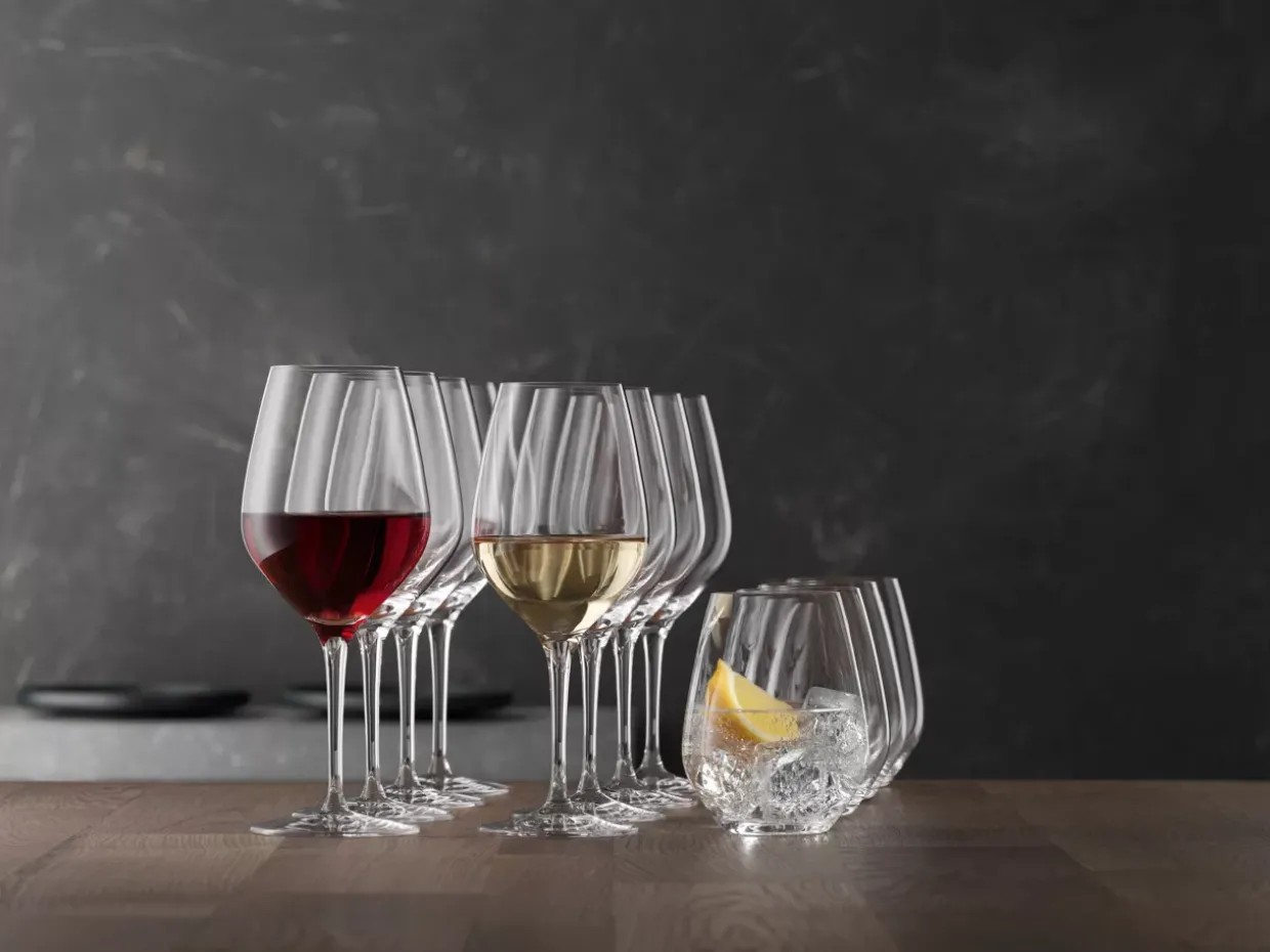 Das hochwertige Gläser-Set von Spiegelau, bestehend aus insgesamt 12 Teilen, bietet eine exquisite Auswahl für Weinliebhaber und Genießer. Das Set umfasst 4 Rotweingläser, 4 Weißweingläser und 4 Universalbecher, die alle aus klarem Glas gefertigt sind und ein elegantes und zeitloses Design aufweisen. Mit seiner exquisiten Qualität und seinem ansprechenden Erscheinungsbild verleiht dieses Set Ihrem gedeckten Tisch einen Hauch von Raffinesse und Stil und ermöglicht Ihnen, Ihren Lieblingswein in bester Qualität zu genießen.