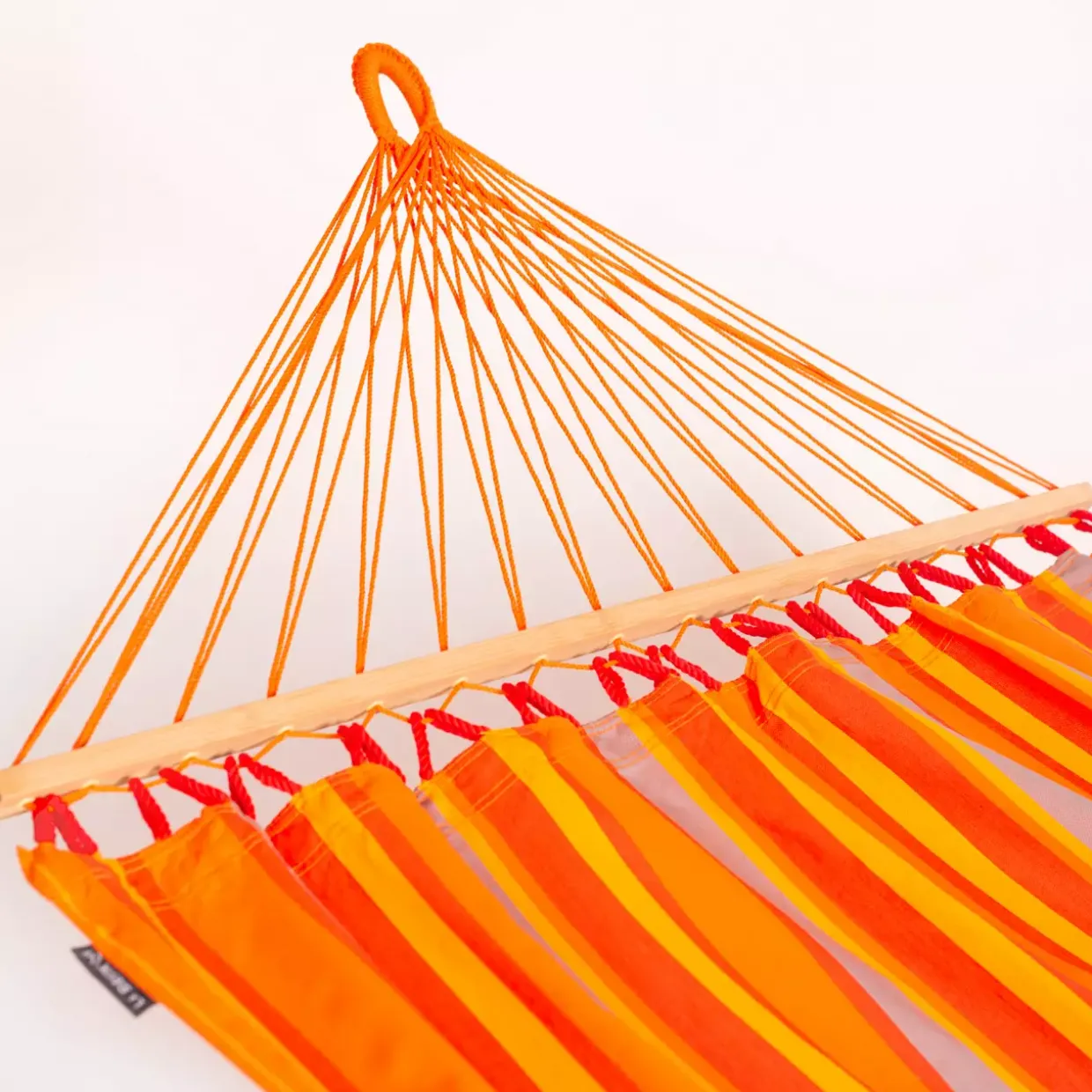 Ein modernes Design, ein angenehmes Material und eine ansprechende Farbe machen diese Hängematte zu einem idealen Begleiter für ruhige Stunden im Freien. Nutzen Sie die Gelegenheit, sich in die Alisio Stabhängematte zu legen und den Alltag hinter sich zu lassen.