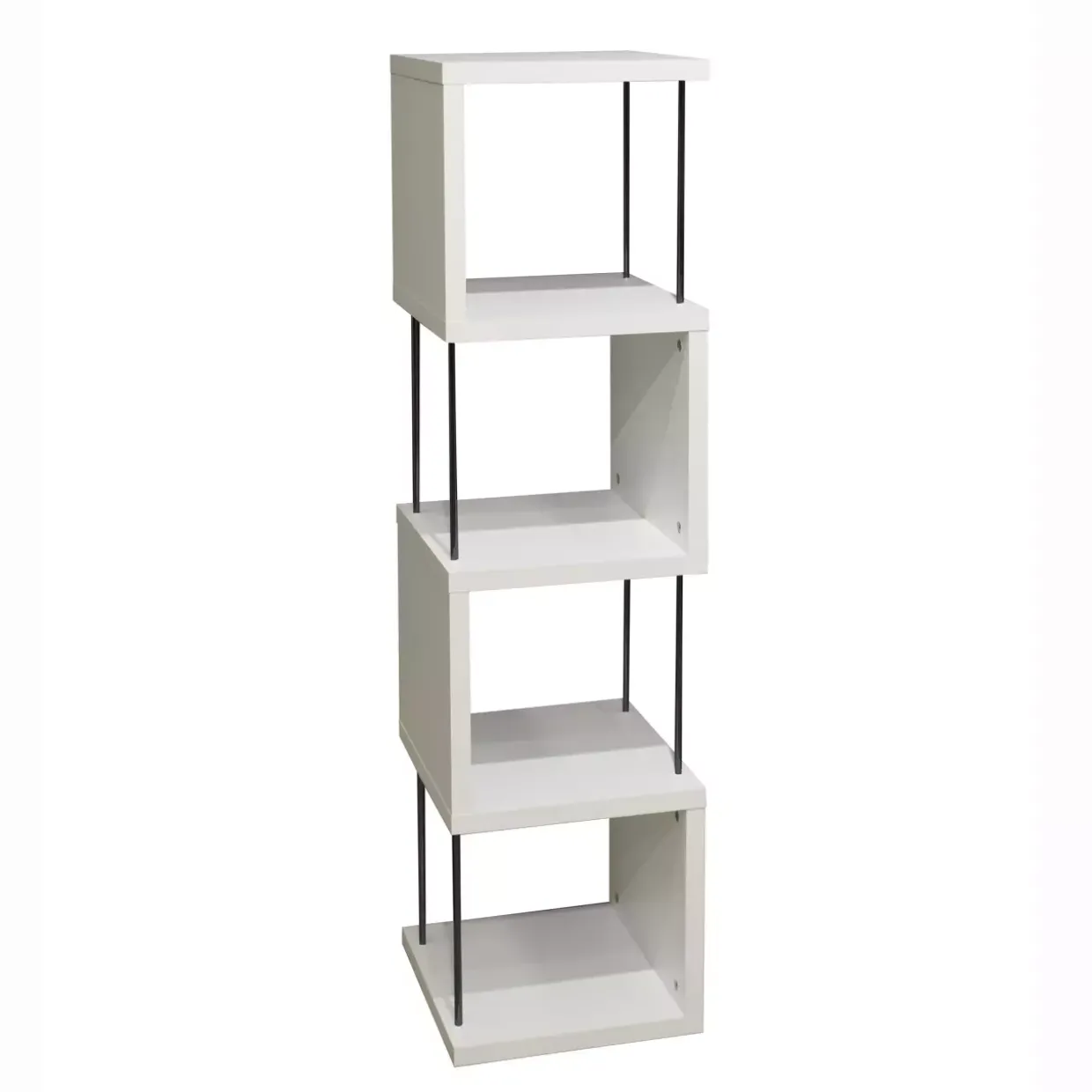 Eleganz in modernem Design: Ein Standregal, das mit seinem zeitlosen Stil und der Kombination aus einem weißen, matt lackierten Finish und schwarzen Stäben überzeugt. Diese ästhetische Kreation bietet nicht nur Platz, sondern auch eine stilvolle Aufwertung für jedes Interieur. Mit vier großzügigen Ablagefächern bietet es ausreichend Raum für Bücher, Dekorationen oder andere Sammlerstücke, die Sie gerne präsentieren möchten.Gefertigt aus einer harmonischen Mischung von Holzwerkstoff, Kunststoff und Metall, verspricht das Regal nicht nur Stabilität, sondern auch Langlebigkeit. Die lackierte und melaminharzbeschichtete Oberfläche sorgt für eine pflegeleichte Handhabung. Ein einfaches feuchtes Abwischen genügt, um die makellose Optik zu bewahren.Das Regal fügt sich nahtlos in jede Jahreszeit ein und bewahrt stets seinen modernen Charme. Die Gleiter-Fußform bietet Stabilität auf verschiedensten Untergründen und ermöglicht eine flexible Platzierung in jedem Raum. Zertifikate wie ISO 9001 und Made in Germany sprechen für die Qualität und die sorgfältige Verarbeitung des Produkts. Eine Investition, die nicht nur durch Funktionalität, sondern auch durch Design und Qualität überzeugt. Ein Möbelstück, das in jedem Zuhause seinen Platz findet und beständige Freude bietet.