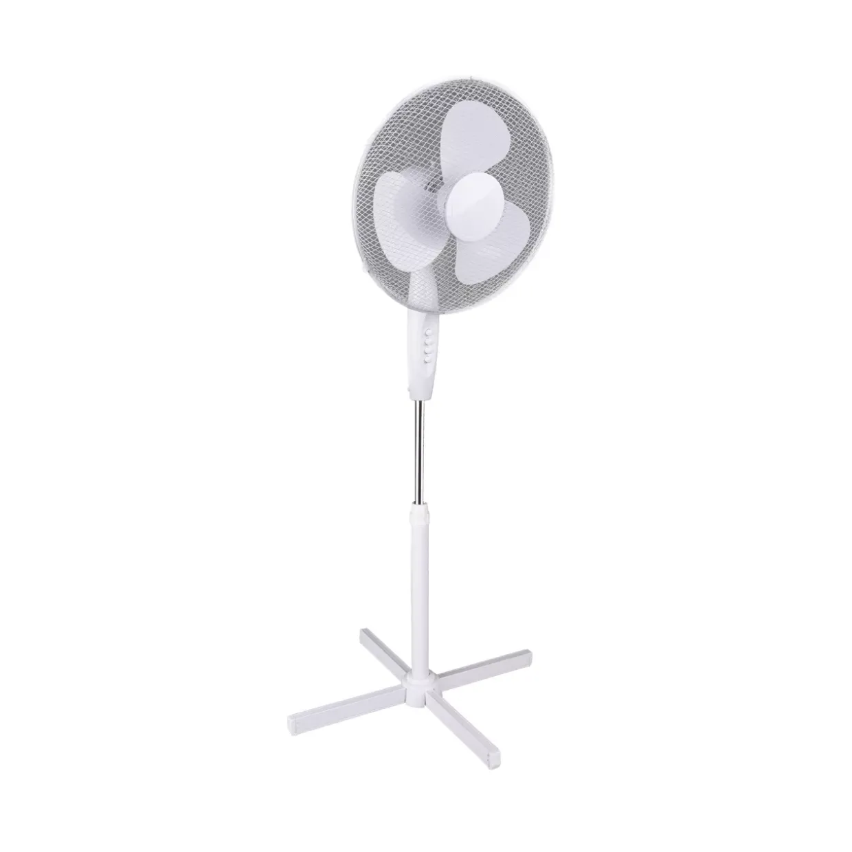 Der Standventilator sorgt für eine kühlende Brise an heißen Sommertagen. Die 3 Geschwindigkeitsstufen lassen sich über einen Schalter einstellen. Zudem ist er mit einem kippbaren Kopf ausgestattet und kann in seiner Höhe flexibel verstellt werden, was Ihnen eine individuelle Einstellung ermöglicht. Die Farbe des Ventilators ist zeitlos und schlicht, weshalb dieser zu fast allen Einrichtungsstilen passt.