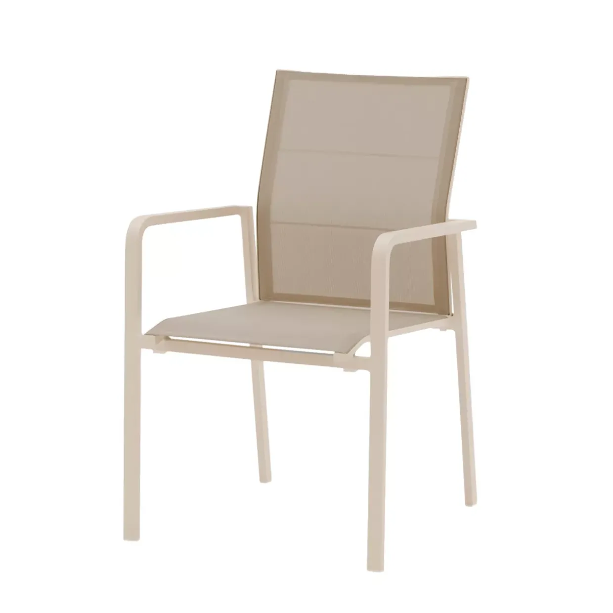 Pulverbeschichtete Oberflächen verleihen diesem Stapelstuhl eine elegante und widerstandsfähige Erscheinung. In modernem Stil gestaltet, fügt sich das Möbelstück nahtlos in zeitgemäße Wohnlandschaften ein. Die Farbgebung in Desert und Light Taupe sorgt für eine warme, einladende Atmosphäre und harmoniert hervorragend mit verschiedenen Einrichtungsstilen.