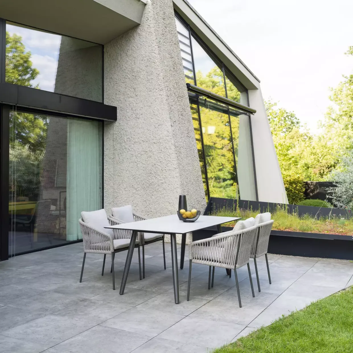 Der Stapelsessel präsentiert sich in einem modernen Stil, der in jedem Außenbereich eine elegante Atmosphäre schafft. Dank der erlesenen Farbauswahl in salt, graubraun, anthrazit und Schwarz lässt sich der Sessel mühelos in jede Gestaltung integrieren.