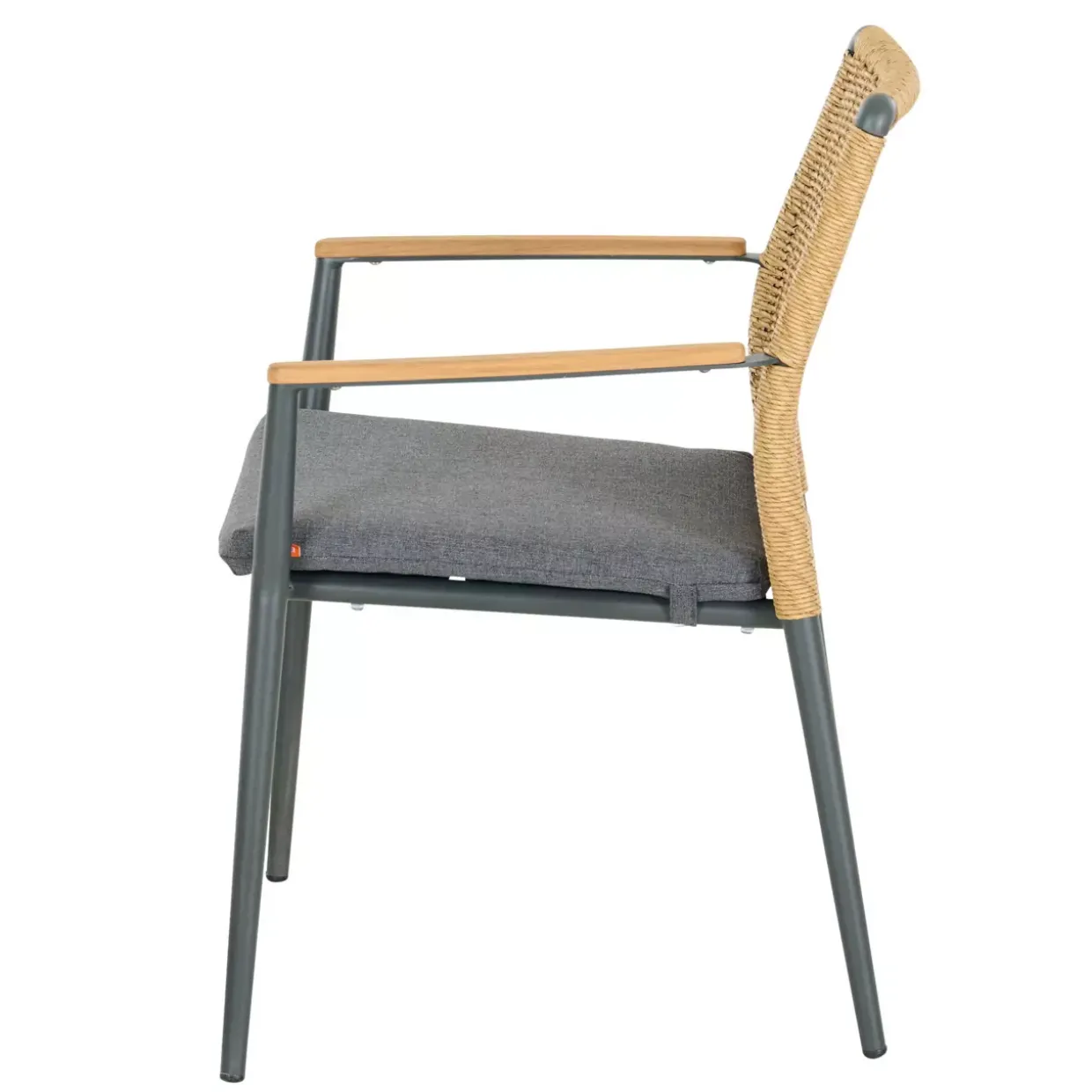 Im zeitgenössischen Stil gehalten, bringt der Roma Stapelsessel einen Hauch von Eleganz in Ihren Außenbereich. Anthrazitfarbene Akzente verleihen diesem Gartenstuhl einen modernen und zugleich eleganten Look, der sich harmonisch in jedes Ambiente einfügt. Die edle Kombination aus robustem Teakholz und hochwertigem Metall verspricht nicht nur Stabilität, sondern auch eine ansprechende Ästhetik.
