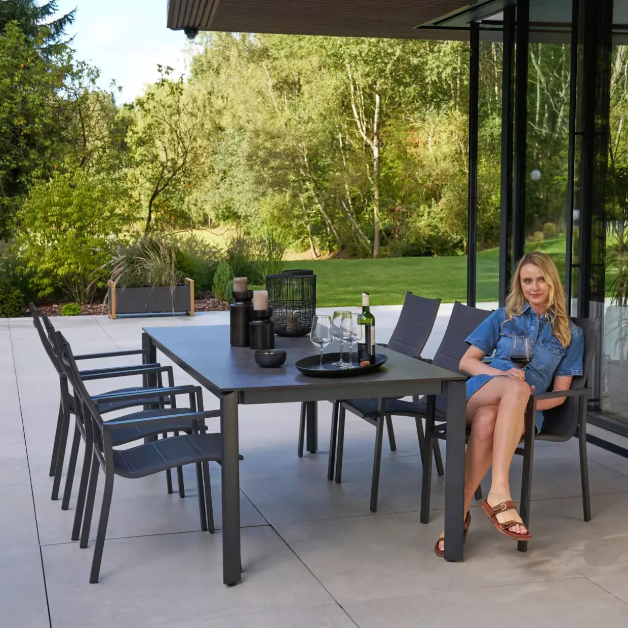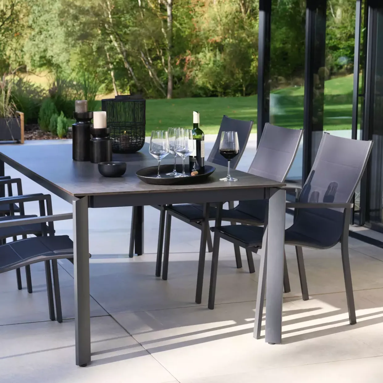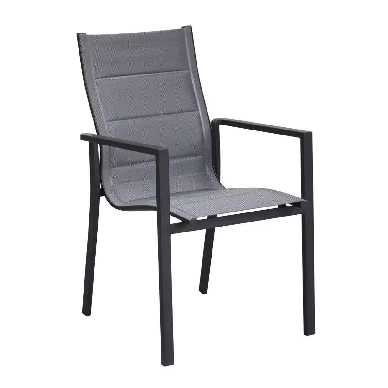 Stapelsessel „Unicamo“; Sitz- und Rückenlehne aus Textilene,; gepolstert; Farbe: anthrazit; Gestell: Aluminium, Farbe: anthrazit