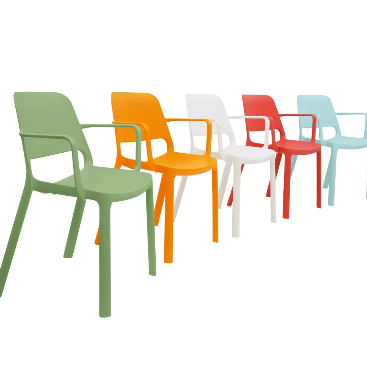 100% Polypropylen, UV- und wetterbeständig, outdoorgeeignet, stapelbar (bis zu 5 Stühle), Sitzhöhe 46 cm. Mindestbestellmenge 2 Stück.