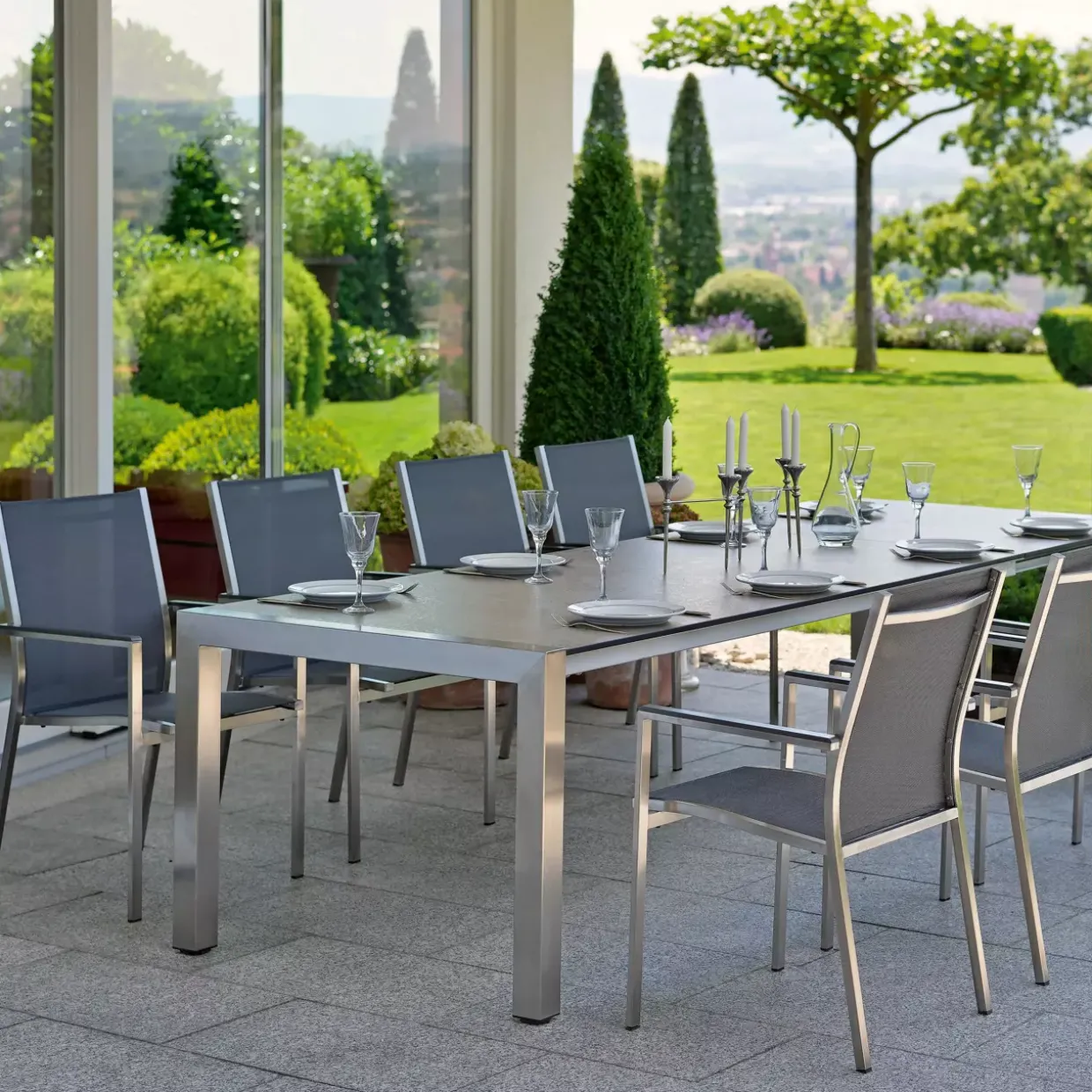 Stapelsessel Cardiff Edelstahl mit Bezug Textilen silbergrau/Aluminiumarmlehnen anthrazit