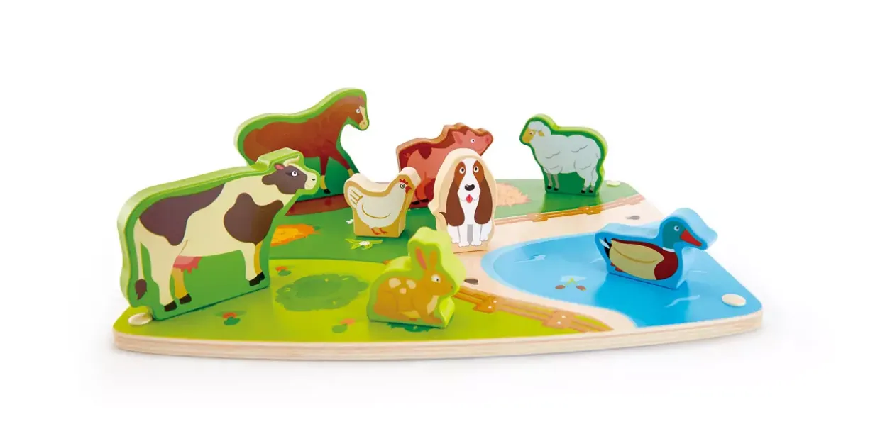 Jedes Tier ist individuell gestaltet, sodass Kinder die Vielfalt der Bauernhoftiere auf spielerische Weise kennenlernen können. Beim Platzieren der Teile auf dem Puzzlebrett wird nicht nur das räumliche Denken geschult, sondern auch die Hand-Augen-Koordination verbessert. Das konventionelle Design des Spiels passt in jedes Kinderzimmer und spricht mit seiner farbenfrohen Gestaltung kleine Entdecker direkt an.