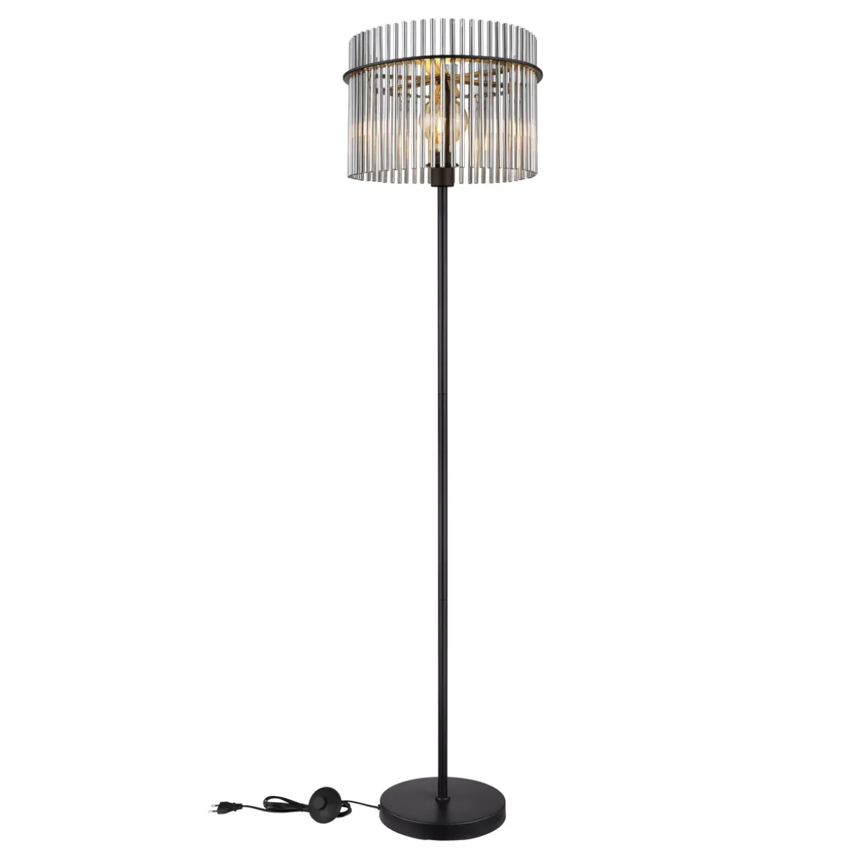 Die Stehleuchte „Gorley“ besticht durch ihr modernes und zugleich elegantes Design, das sich nahtlos in verschiedene Einrichtungsstile einfügt. Hergestellt aus hochwertigem Metall in einem stilvollen mattschwarzen Finish, verleiht sie Ihrem Raum eine edle und zeitgemäße Note. Mit einer beeindruckenden Größe von 38 x 152 Zentimetern eignet sich diese Leuchte perfekt als dekoratives und funktionales Beleuchtungselement in Ihrem Wohnzimmer, Schlafzimmer oder Büro. Ein besonderes Highlight der Stehleuchte „Gorley“ ist ihr einzigartiger Lampenschirm, der aus grauen Rauchglasstäben besteht. Dieses raffinierte Design erzeugt ein faszinierendes Licht- und Schattenspiel, das eine angenehme und gemütliche Atmosphäre schafft. Die grauen Rauchglasstäbe brechen das Licht auf elegante Weise und sorgen für eine gleichmäßige und sanfte Beleuchtung. Die Leuchte ist für Leuchtmittel des Typs E27 geeignet und kann mit einer maximalen Leistung von bis zu 60 Watt betrieben werden.