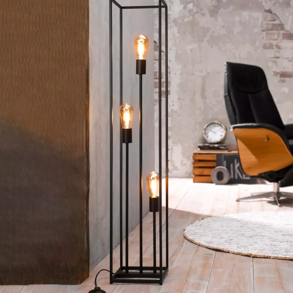 Schwarzes mattes Finish trifft auf zeitlosen Retro-Stil – die Stehleuchte Hamper vereint beides mit Eleganz. In jeder Jahreszeit einsetzbar, fügt sie sich harmonisch in Ihr Zuhause ein. Diese Leuchte ist nicht nur ein Blickfang, sondern auch funktional durchdacht. Mit einer E27-Fassung ausgestattet, bietet sie Flexibilität bei der Wahl des Leuchtmittels, das leider nicht im Lieferumfang enthalten ist.