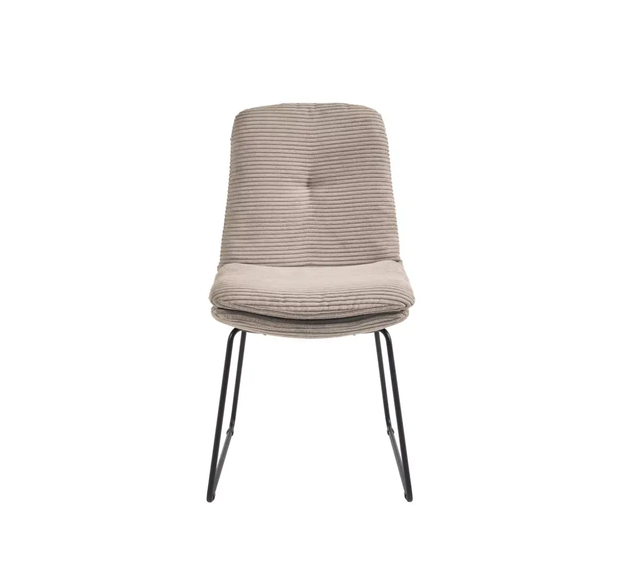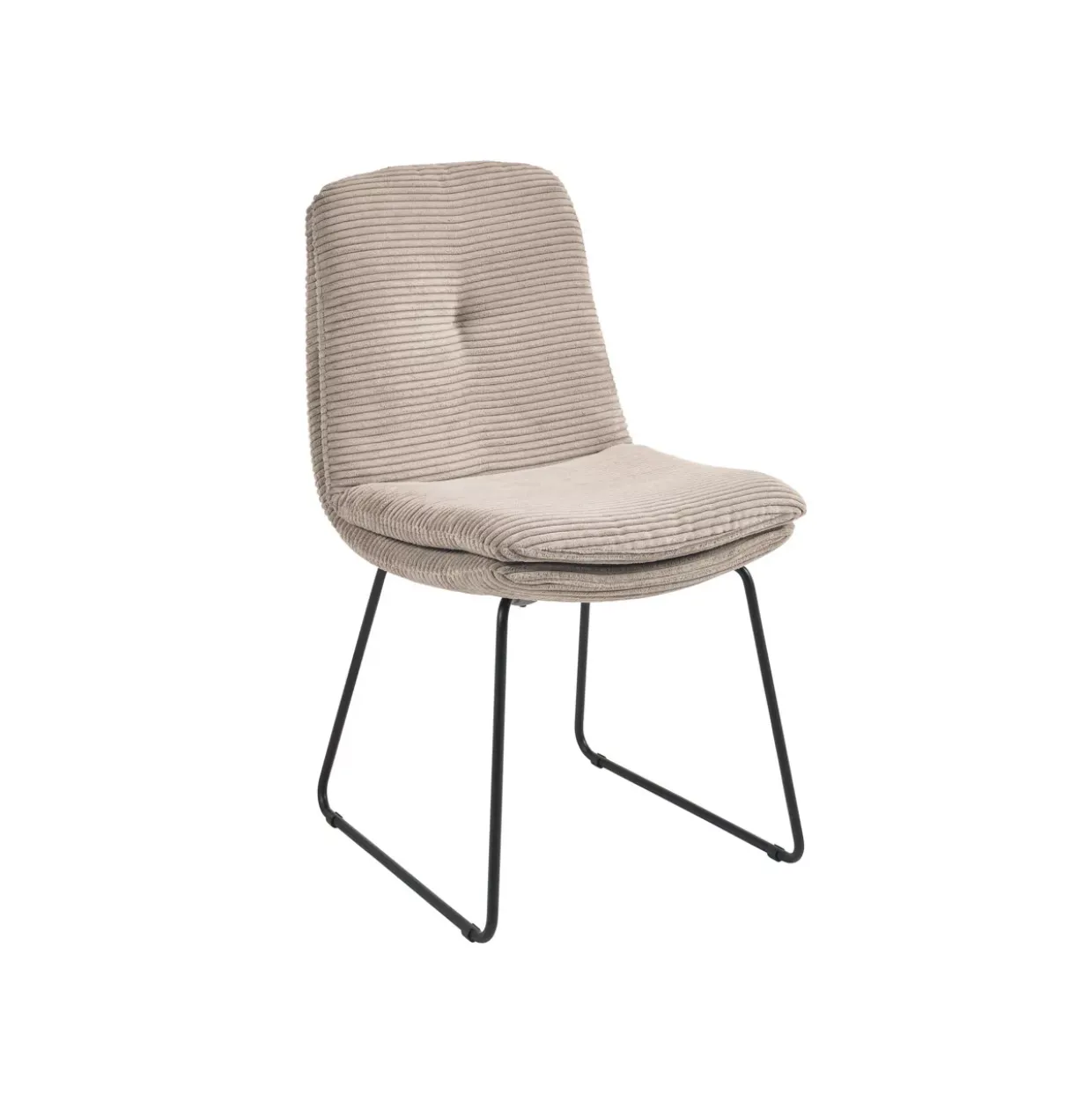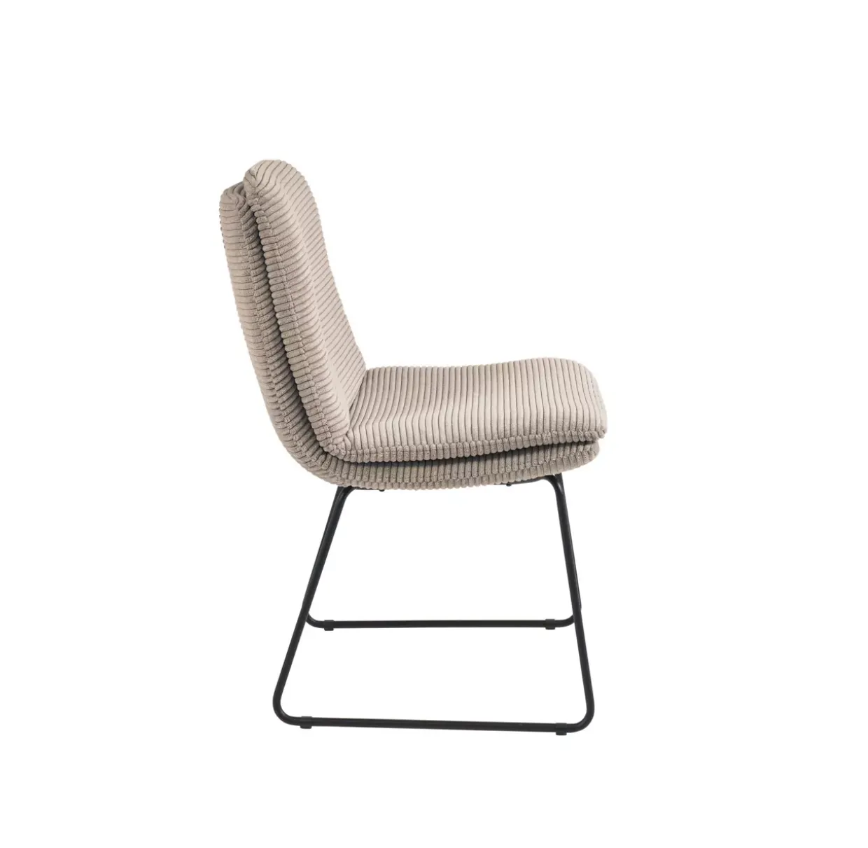 Das Material aus Cord verleiht dem Stuhl eine besondere Haptik und hebt ihn von anderen Modellen ab. In den Farben Taupe und Schwarz erhältlich, fügt sich der Stuhl harmonisch in verschiedene Raumkonzepte ein und bietet eine stilvolle Ergänzung für Esszimmer oder Büro.