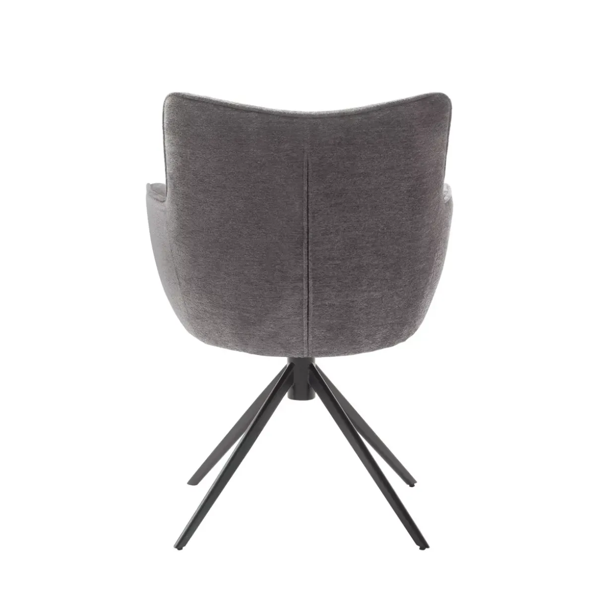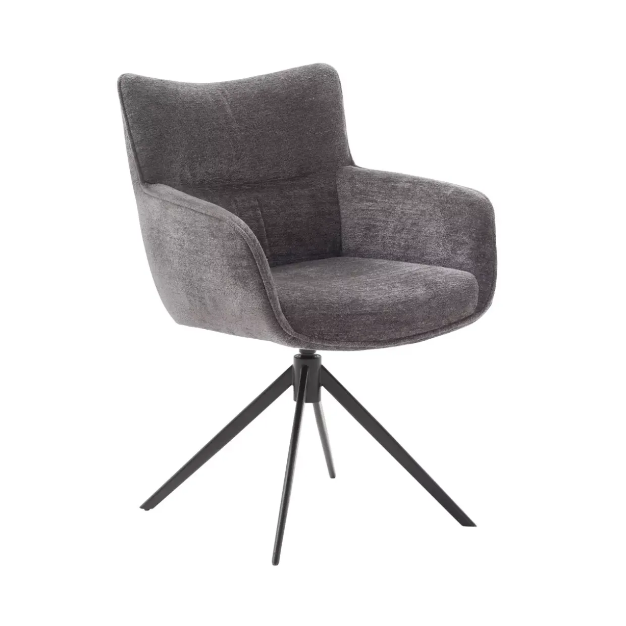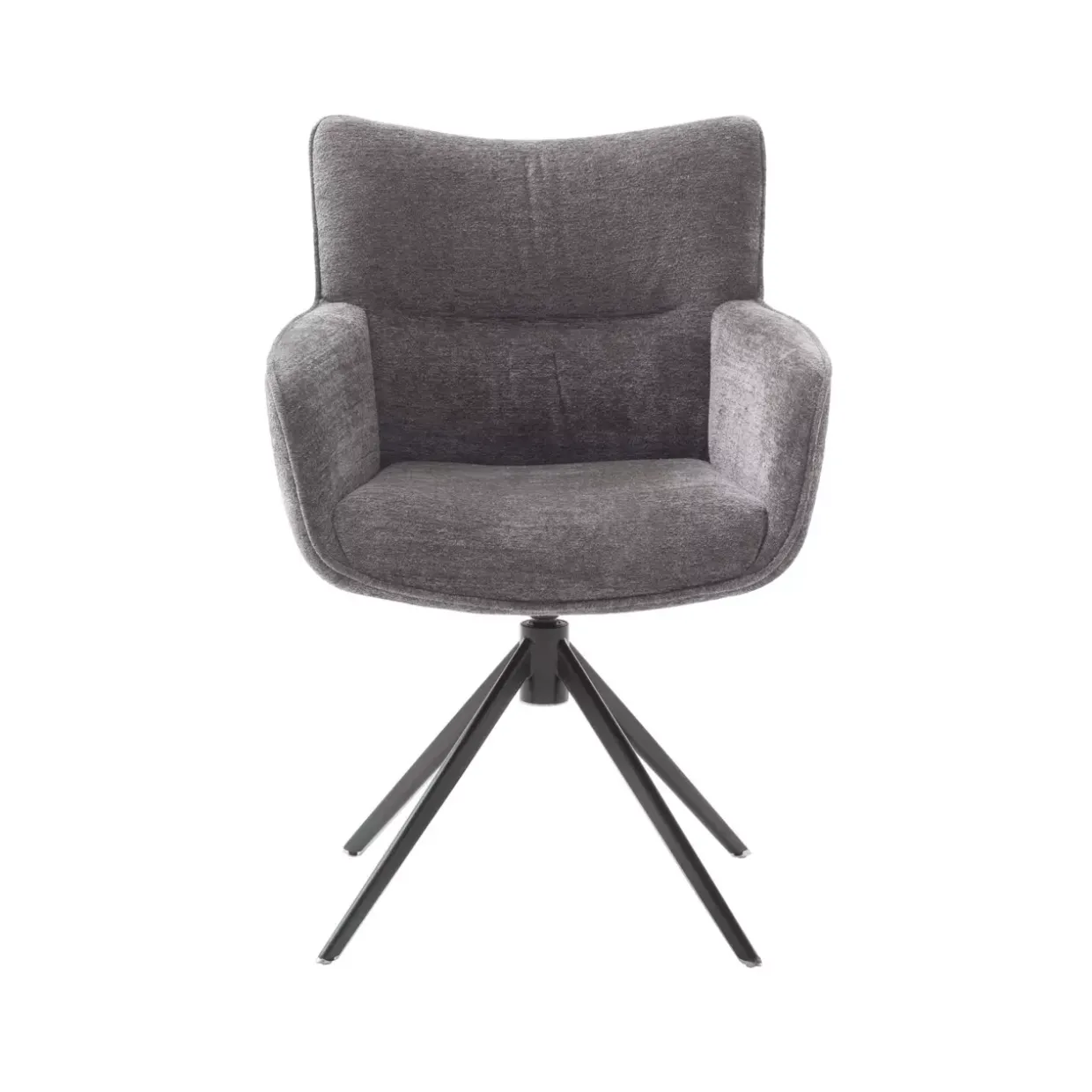 LIMONE 1 4 Fuß Stuhl Exklusiv BEGROSEin luxuriöser Sitzkomfort, der seinesgleichen sucht: Der Taschenfederkern-Luxuskomfortsitz bietet optimalen Halt und höchste Bequemlichkeit. Der moderne Stil des Stuhls fügt sich nahtlos in zeitgenössische Interieurs ein und setzt stilvolle Akzente. Dank des strapazierfähigen Strukturgewebe-Stoffs in anthrazit und schwarz matt, kombiniert mit einer lackierten Oberfläche, wird eine ansprechende Optik gewährleistet.Auf einem stabilen 4-Fußgestell aus Metall ruht dieser Stuhl sicher und zuverlässig. Die Verwendung von Webstoff aus hochwertigem Polyester sorgt nicht nur für eine angenehme Haptik, sondern auch für Langlebigkeit. Perfekt ergänzt wird dies durch eine Schaumstofffüllung, die zusätzlichen Sitzkomfort bietet.Besonders innovativ ist die 360°-Drehfunktion mit Nivellierung, die nicht nur Flexibilität, sondern auch eine ergonomische Sitzhaltung fördert. Diese Funktionalität macht den Stuhl zu einem praktischen Begleiter in verschiedenen Wohnsituationen, sei es im Esszimmer oder im Arbeitsbereich.Das Zusammenspiel von Metall und Textil verleiht dem Stuhl eine moderne Eleganz, während die durchdachte Polsterung einen langanhaltenden Komfort garantiert. Ein Möbelstück, das sowohl ästhetisch als auch funktional überzeugt und jeden Raum bereichert.