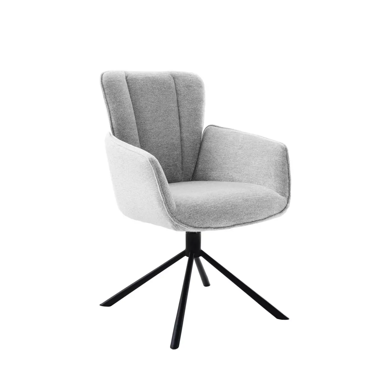 Der Amber 2 Stuhl mit Armlehnen präsentiert sich mit einem ansprechenden, modernen Design, das Ihre Einrichtung stilvoll ergänzt. Eine Kombination aus grauen und schwarzen Tönen verleiht dem Stuhl eine elegante und zeitlose Ästhetik. Sein robustes 4-Fußgestell aus Metall sorgt für Stabilität, während die schwarze Fußfarbe nahtlos in das Gesamtbild integriert ist.Besonders hervorzuheben ist die 360 Grad Drehfunktion, die Ihnen eine flexible Nutzung ermöglicht und den Komfort steigert. Der bewegliche Rücken bietet zusätzliche Unterstützung und passt sich Ihren individuellen Bedürfnissen an. Beim Amber 2 Stuhl trifft Funktionalität auf Design, sodass sowohl Komfort als auch Ästhetik gewährleistet sind.Das verwendete Textilmaterial ist nicht nur langlebig, sondern auch pflegeleicht, was den Stuhl zu einer praktischen Wahl für den Alltag macht. Der Rückenbezug aus Echtbezug sorgt für ein natürliches Sitzgefühl und unterstreicht die hochwertige Verarbeitung dieses Möbels. Ein Stuhl, der nicht nur durch seine Optik, sondern auch durch seine Funktionalität überzeugt und sich mühelos in verschiedene Wohnkonzepte einfügt. Ideal für alle, die Wert auf Qualität und modernes Design legen. Der Amber 2 Stuhl mit Armlehnen vereint Komfort und Stil auf beeindruckende Weise.
