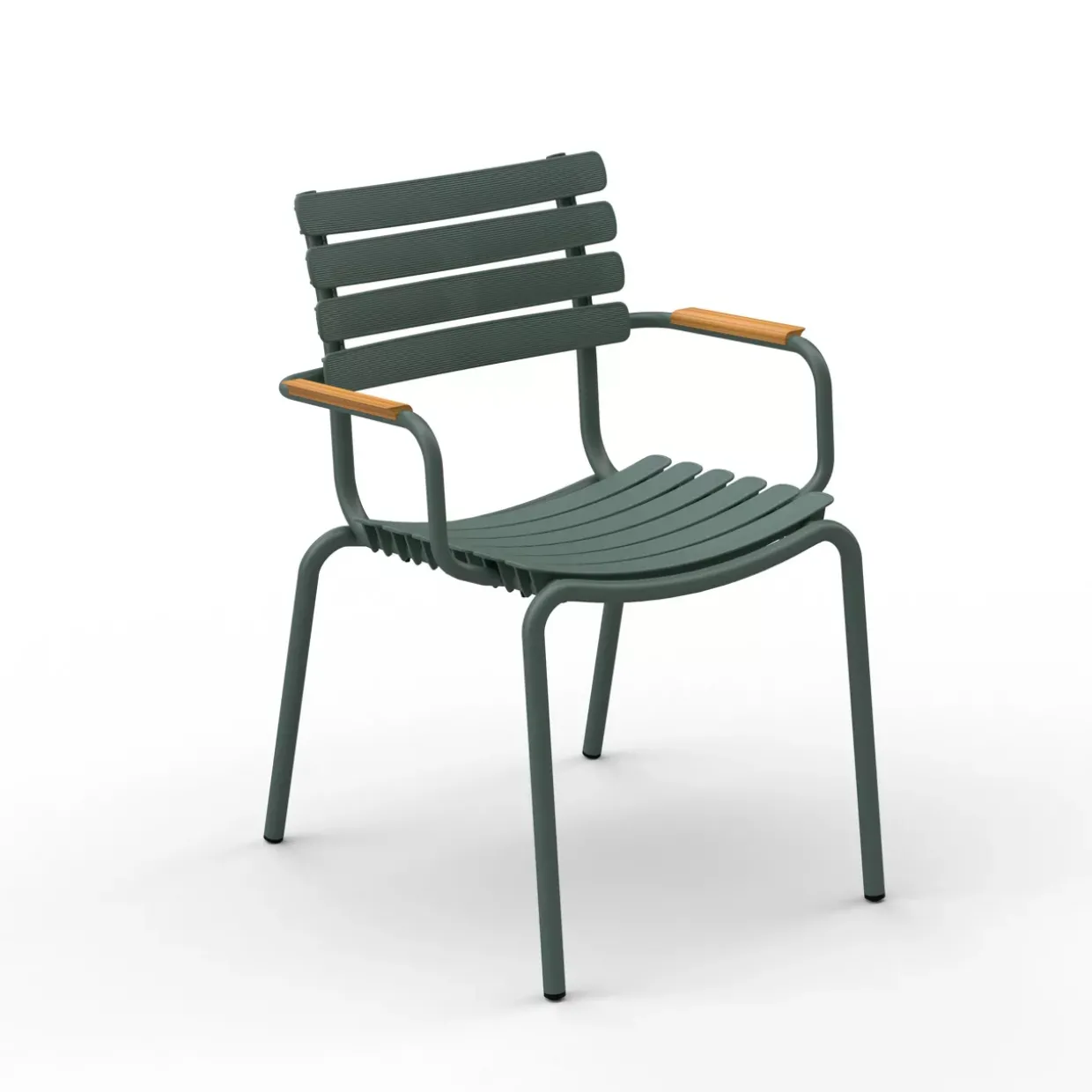 Ein Hauch von Natur in Ihrem Zuhause – der Dining Stuhl in edlem Olivgrün bringt Eleganz und Ruhe in Ihren Essbereich. Mit seiner konventionellen Form und dem stabilen 4-Fußgestell aus einer raffinierten Kombination von Kunststoff, Metall und Holzwerkstoff, bietet dieser Stuhl nicht nur ästhetische Anziehungskraft, sondern auch robuste Langlebigkeit.Die Armlehnen aus Bambus verleihen dem Design eine warme Note und ergänzen die natürliche Farbgebung perfekt. Bei der Wahl der Materialien wurde zudem auf Wetterbeständigkeit und UV-Schutz geachtet, wodurch der Dining Stuhl ideal für den Einsatz im Freien geeignet ist. Dieser Stuhl wurde mit einer stilvollen Monocolor-Farbgebung gestaltet, die sich dezent in verschiedene Einrichtungsstile einfügt und gleichzeitig einen modernen Akzent setzt. Durch die Verwendung hochwertiger Materialien wird eine hohe Beständigkeit gegen die Einflüsse von Sonne und Wetter gewährleistet, sodass der Stuhl auch nach vielen Jahren noch wie neu aussieht.Ob im Innenbereich oder auf der Terrasse, der Dining Stuhl ist eine harmonische Ergänzung für jeden Raum, der auf Qualität und zeitloses Design Wert legt. Setzen Sie auf Stil und Funktionalität – der Dining Stuhl ist die perfekte Wahl für anspruchsvolle Umgebungen.