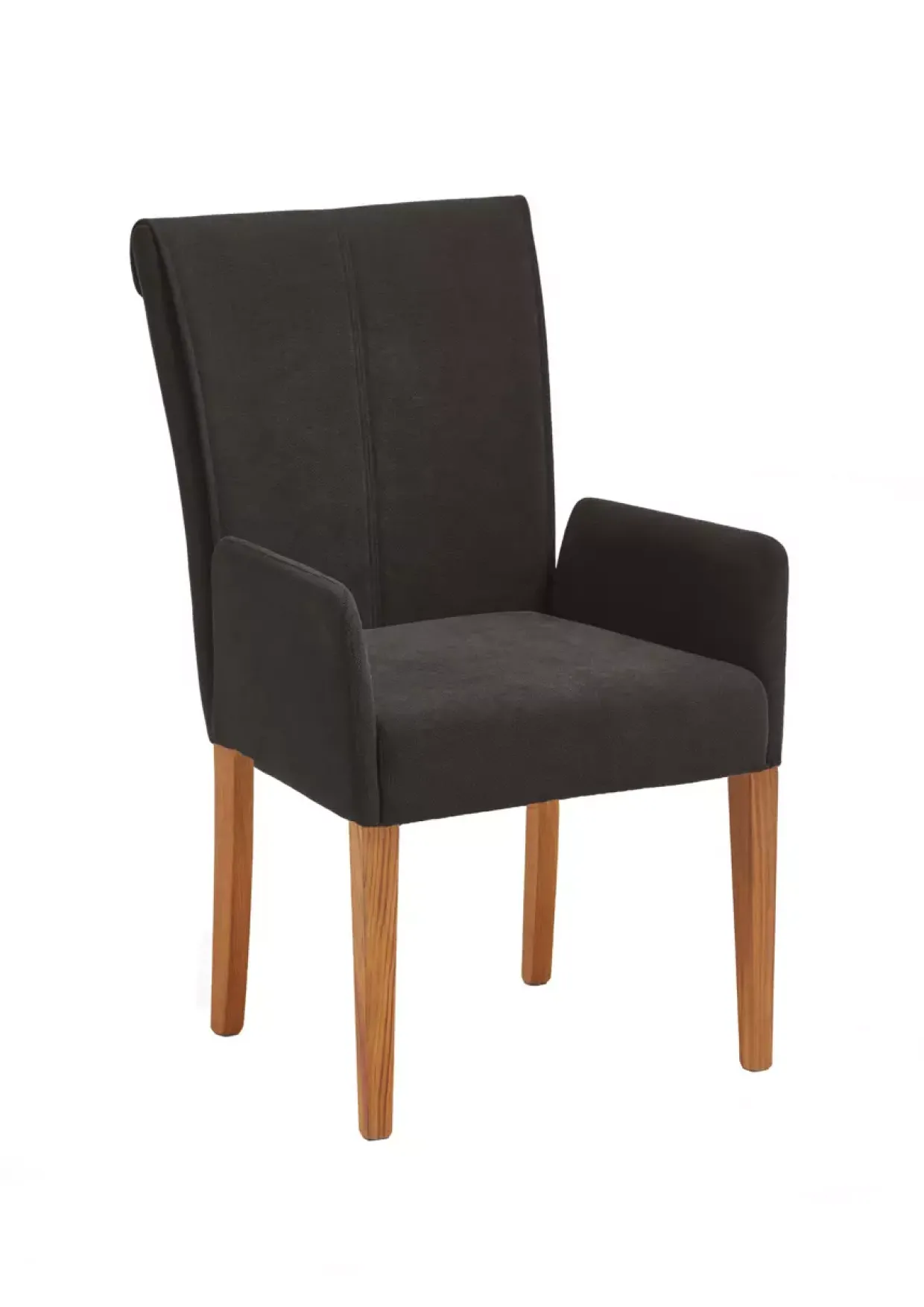 Der Echtbezug des Rückens sorgt für eine angenehme Haptik und unterstreicht den hochwertigen Charakter des Möbelstücks. Durch die integrierten Armlehnen wird das Sitzen zu einem wahren Vergnügen, während das Polsterdoppel im Rücken zusätzlichen Komfort bietet. Diese Kombination aus Funktionalität und Design macht den Stuhl zu einem idealen Begleiter für lange Abende am Esstisch oder im Wohnzimmer.
