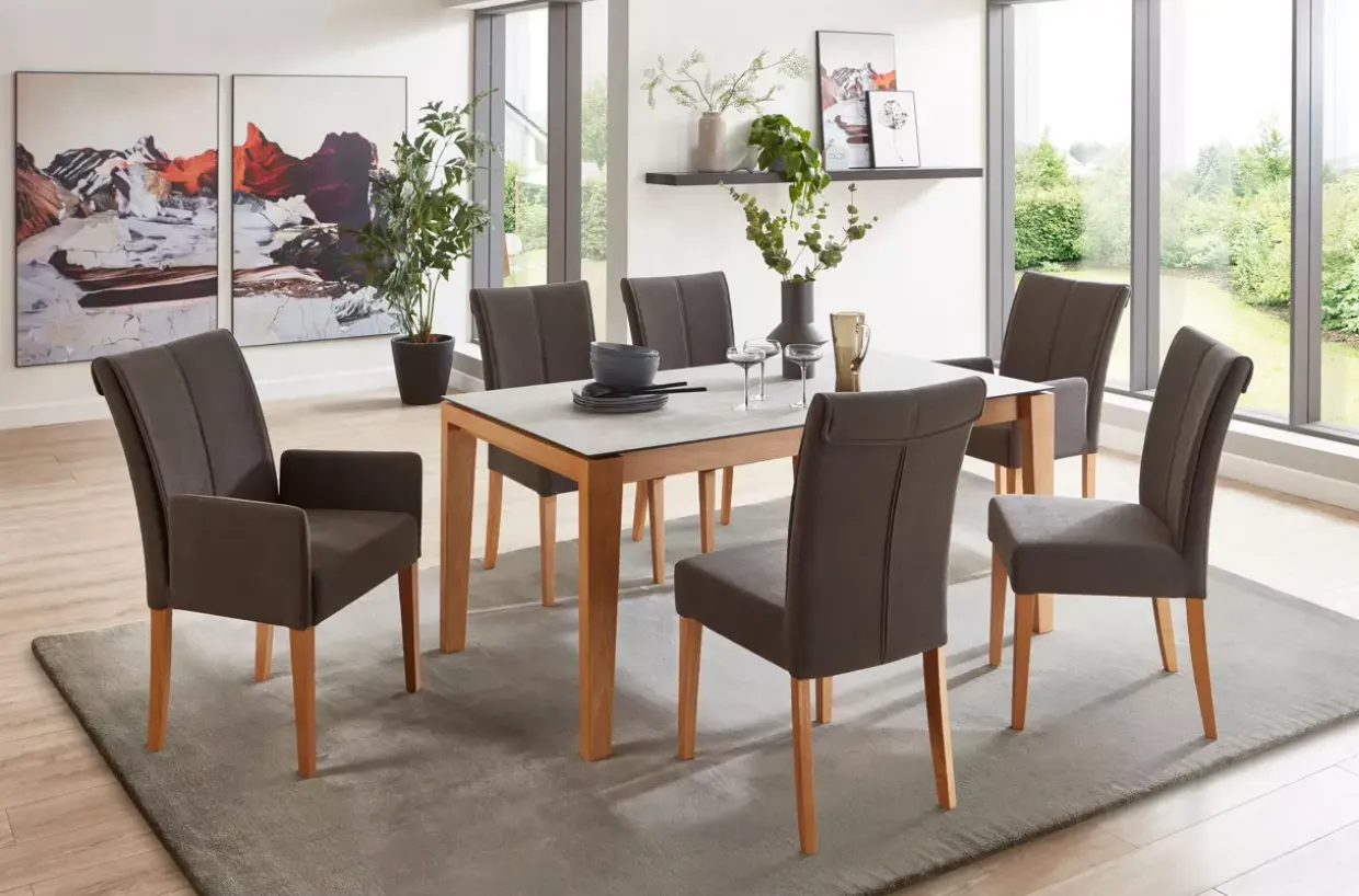 Ein faszinierendes Zusammenspiel aus Holz und Stoff prägt das Erscheinungsbild des Stuhls Valeda. Der skandinavische Stil, kombiniert mit der dunklen Braunton des Stoffbezuges aus PET-Recycling, verleiht diesem Möbelstück eine elegante und gleichzeitig nachhaltige Ästhetik. Der Valeda Stuhl beeindruckt durch seine durchdachte Konstruktion, die nicht nur Komfort, sondern auch Stil in Ihren Wohnraum bringt.