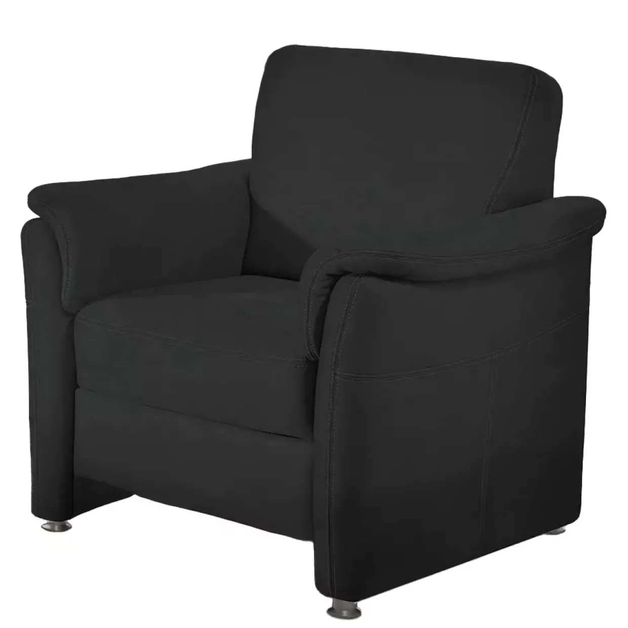 Die Kombination aus Stoff und Metall verleiht diesem Sessel eine unverwechselbare Eleganz. Die konventionelle Form mit einem stabilen 4-Fußgestell sorgt für sicheren Stand und zeitlose Ästhetik. Der Federkern in der Polsterung verspricht langanhaltenden Komfort und optimale Unterstützung, selbst bei längerem Sitzen. Durch den Echtbezug am Rücken erhält der Sessel eine besonders hochwertige Note, die sich wunderbar in jedes Wohnambiente einfügt.Die Farboptionen in Anthrazit und FM Alu bieten vielseitige Möglichkeiten, den Sessel harmonisch in bestehende Raumkonzepte zu integrieren. Ein besonderes Highlight sind die Fäden Ton in Ton, die dem Design eine subtile Raffinesse verleihen. Praktische Kopfstützentaschen bieten zusätzlichen Komfort und Funktionalität, indem sie Platz für kleine Utensilien schaffen oder einfach als entspannende Stütze dienen.Dieser Sessel ist ein perfektes Beispiel für durchdachtes Design, das Funktionalität und Stil vereint. Die klaren Linien und der hochwertige Materialmix sprechen für sich und machen diesen Sessel zu einem idealen Begleiter für entspannte Stunden. Entdecken Sie die Vielseitigkeit und Qualität, die in diesem Möbelstück stecken, und lassen Sie sich von seiner Anmut begeistern.