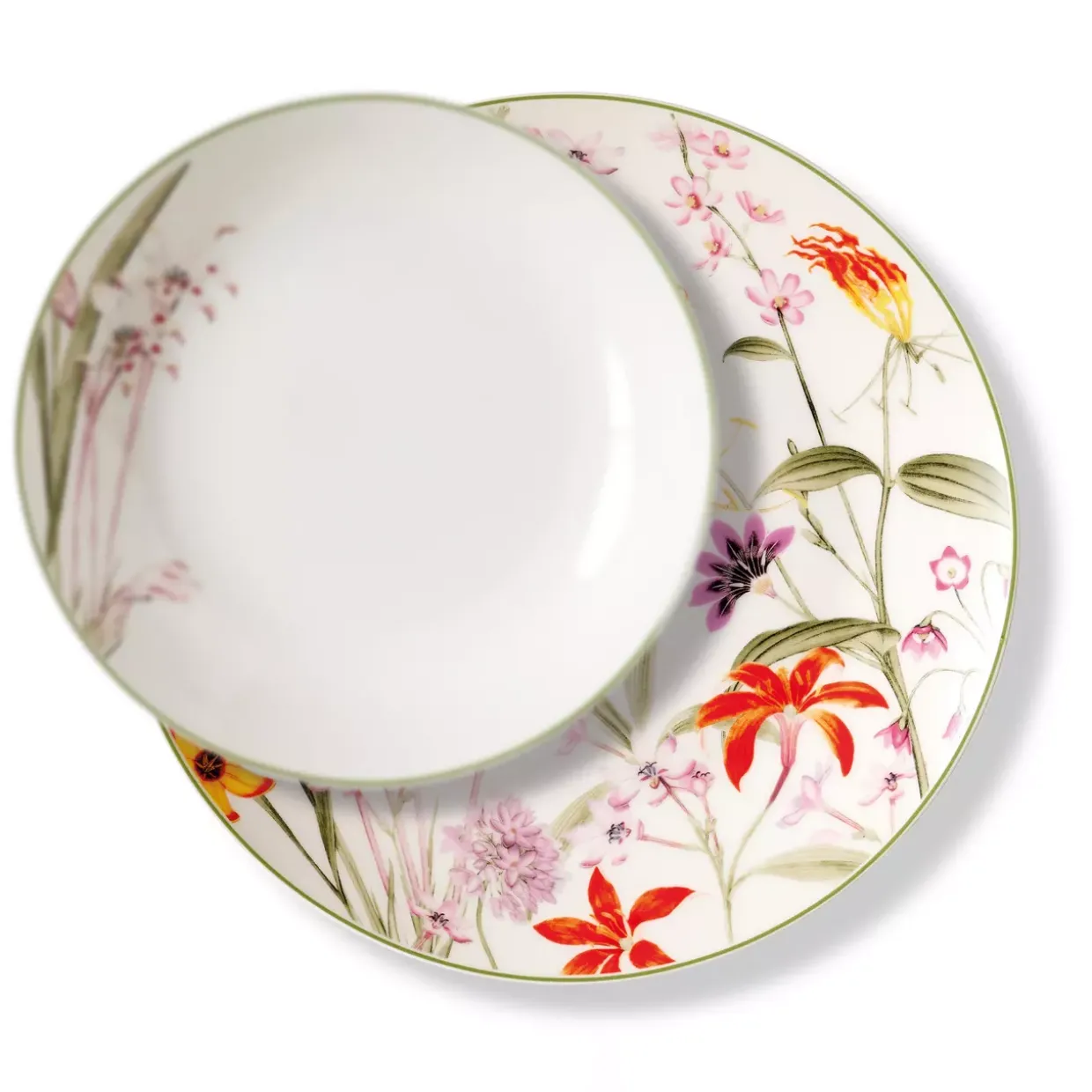 Ein Blumenmuster, das an die Schönheit eines Cottage-Gartens erinnert, ziert das elegante Tafelservice Modell Flora. Diese Serie aus feinem Porzellan besticht durch ihren einzigartigen Stil und die gelungene Kombination aus klassischen Elementen und lebendigen Farben. Die runde Form verleiht dem Geschirr eine zeitlose Eleganz und macht es zu einem Blickfang auf jedem Tisch.