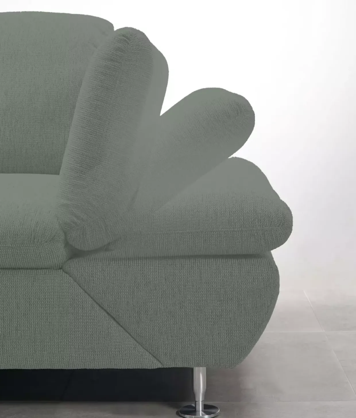 Das Kopfteil lässt sich individuell verstellen, sodass Sie jederzeit Ihre bevorzugte Sitz- oder Liegeposition finden können. Die Polsterung mit Federkern sorgt für optimalen Komfort und unterstützt ein angenehmes Sitzgefühl, das für Entspannung nach einem langen Tag sorgt.