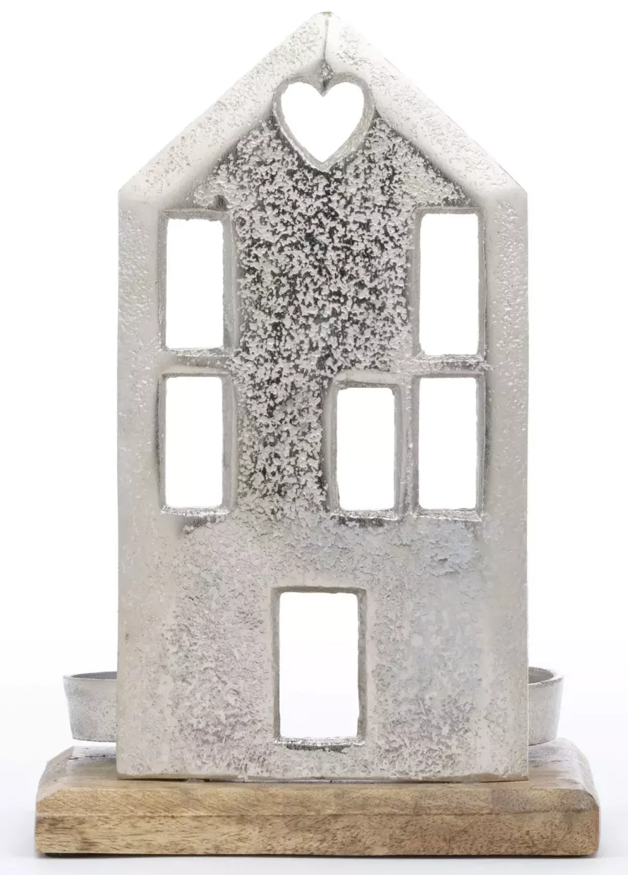 Ein besonderes Augenmerk liegt auf der Verwendung von Aluminium, das für seine Langlebigkeit und seinen edlen Glanz bekannt ist. Dieses Material sorgt nicht nur für Stabilität, sondern verleiht dem Teelichthalter auch eine moderne Note. Der naturfarbene Holzanteil sorgt für eine warme und einladende Atmosphäre, die Ihr Zuhause in ein gemütliches Licht taucht.