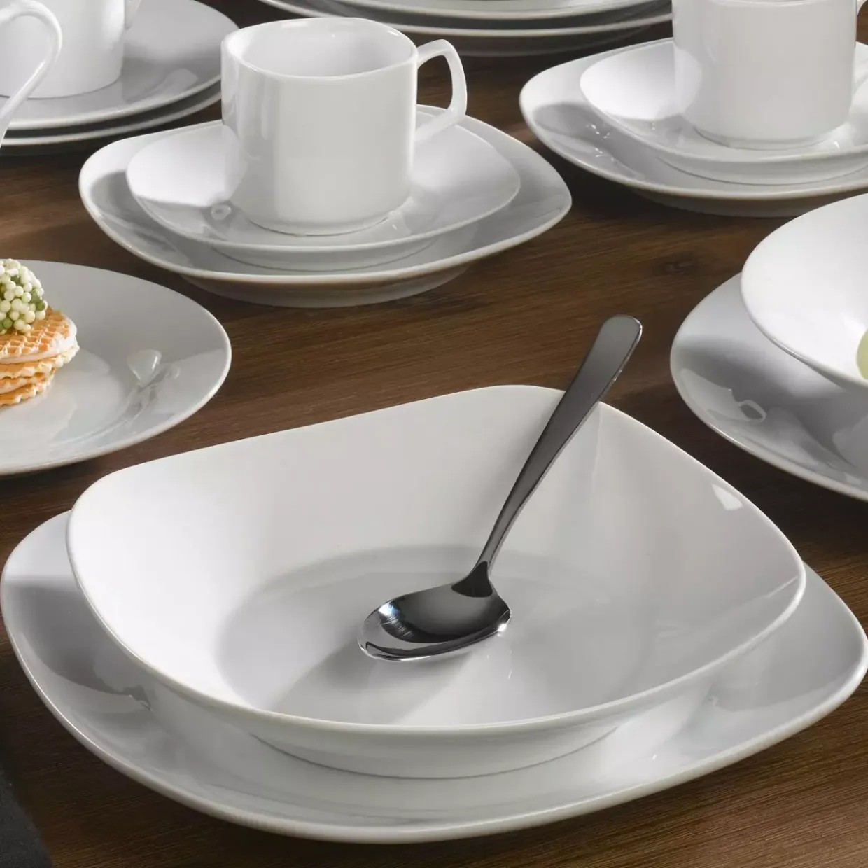Porzellan, bekannt für seine edle Anmutung und Robustheit, bildet das Herzstück dieses modernen Tellers. Der runde Teller präsentiert sich in einem stilvollen, weißen Design, das sich nahtlos in jede gedeckte Tafel einfügt. Mit einem Durchmesser von 23 cm bietet er ausreichend Platz für kreative Speisenpräsentationen, ob im privaten oder professionellen Umfeld.