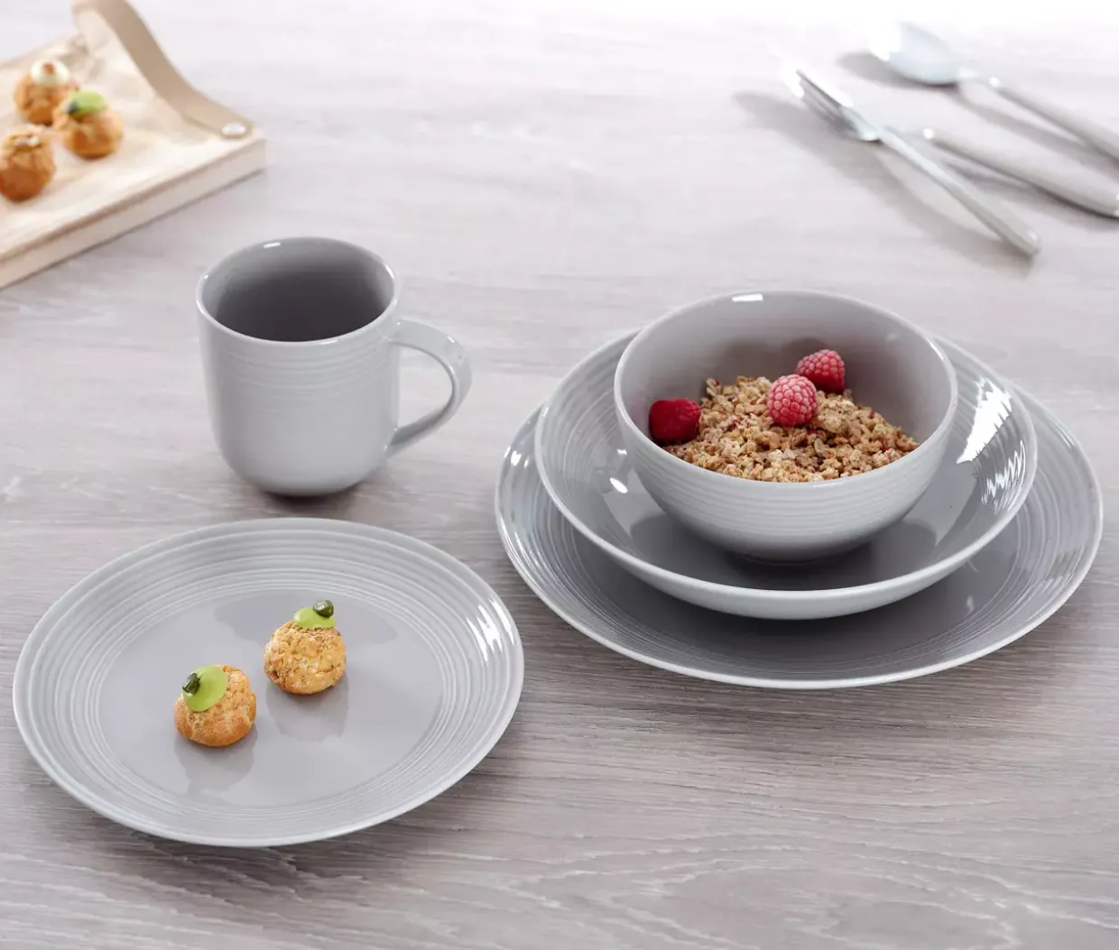 Ein Hauch von Eleganz in Grau: Der Speiseteller Levi verbindet konventionellen Stil mit zeitloser Schlichtheit. Der runde Teller aus hochwertigem Porzellan ist für den alltäglichen Gebrauch ebenso geeignet wie für besondere Anlässe. Mit einem Durchmesser von 27 Zentimetern bietet er ausreichend Platz für vielseitige kulinarische Kreationen.