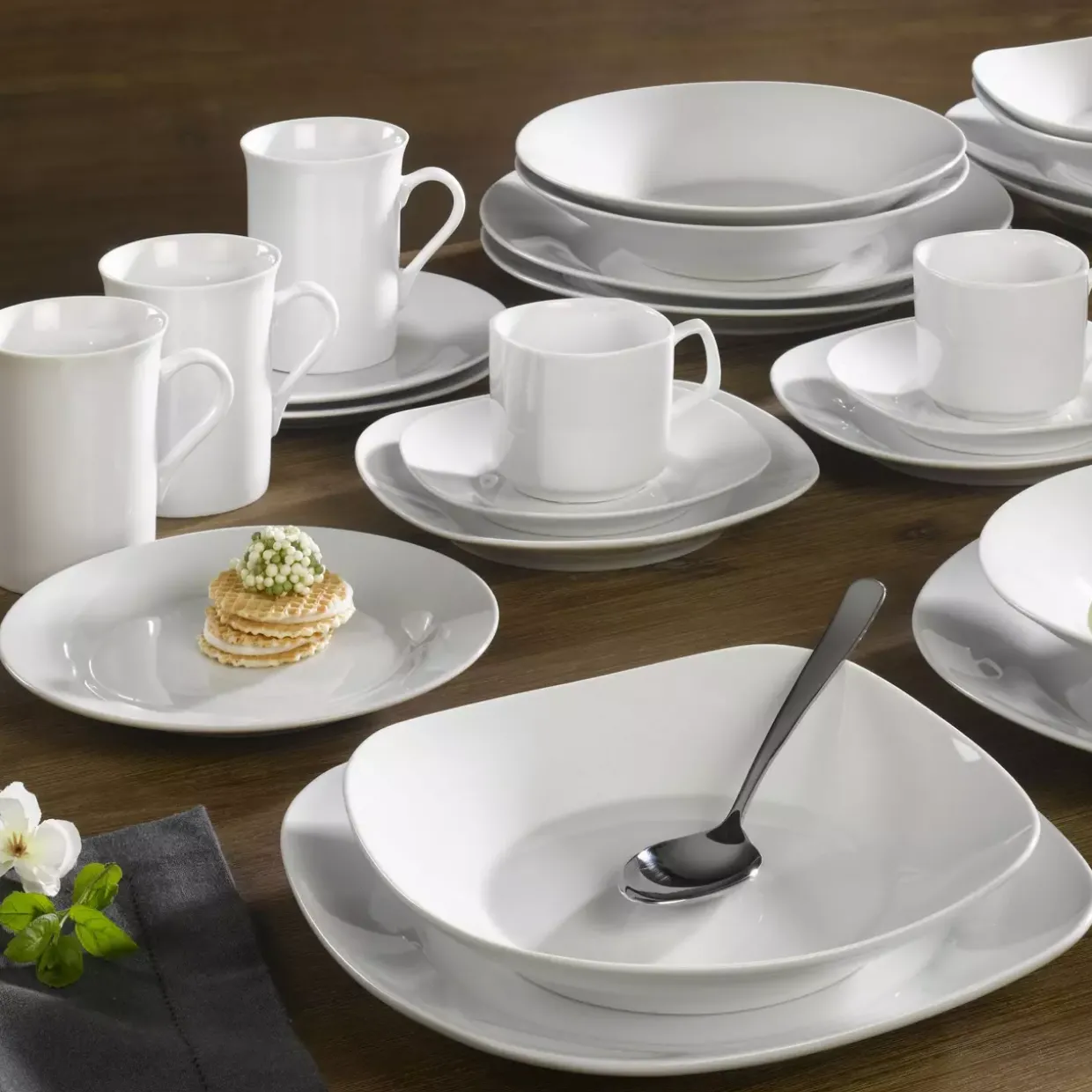flach quadratisch;Quadratische Eleganz trifft auf moderne Ästhetik – dieser Porzellanteller vereint beides in einem zeitlosen Design. In reinem Weiß gehalten, fügt er sich nahtlos in jede Tischdekoration ein und bietet eine stilvolle Präsentationsfläche für kulinarische Kreationen. Porzellan, ein edler Vertreter der Keramik, sorgt dafür, dass dieser Teller nicht nur optisch ansprechend, sondern auch besonders widerstandsfähig ist. Die lebensmittelechte Oberfläche stellt sicher, dass Speisen unbedenklich serviert werden können. So wird jede Mahlzeit zu einem besonderen Erlebnis.Die Pflegeleichtigkeit dieses Tellers ist ein weiterer Pluspunkt. Spülmaschinengeeignet, lässt er sich mühelos reinigen und behält dabei seine strahlende Erscheinung. Dies spart wertvolle Zeit im hektischen Alltag und sorgt für dauerhafte Freude am Produkt.Ein Teller, der nicht nur durch seine Funktionalität besticht, sondern auch als stilvolles Accessoire für den Tisch dient. Seine moderne Form und das hochwertige Material machen ihn zu einem vielseitigen Begleiter für den täglichen Gebrauch und besondere Anlässe. Genießen Sie die harmonische Verbindung von Form und Funktion, die jedes Gericht zu einem optischen Genuss erhebt. Ein Porzellanteller, der in keiner Küche fehlen sollte.