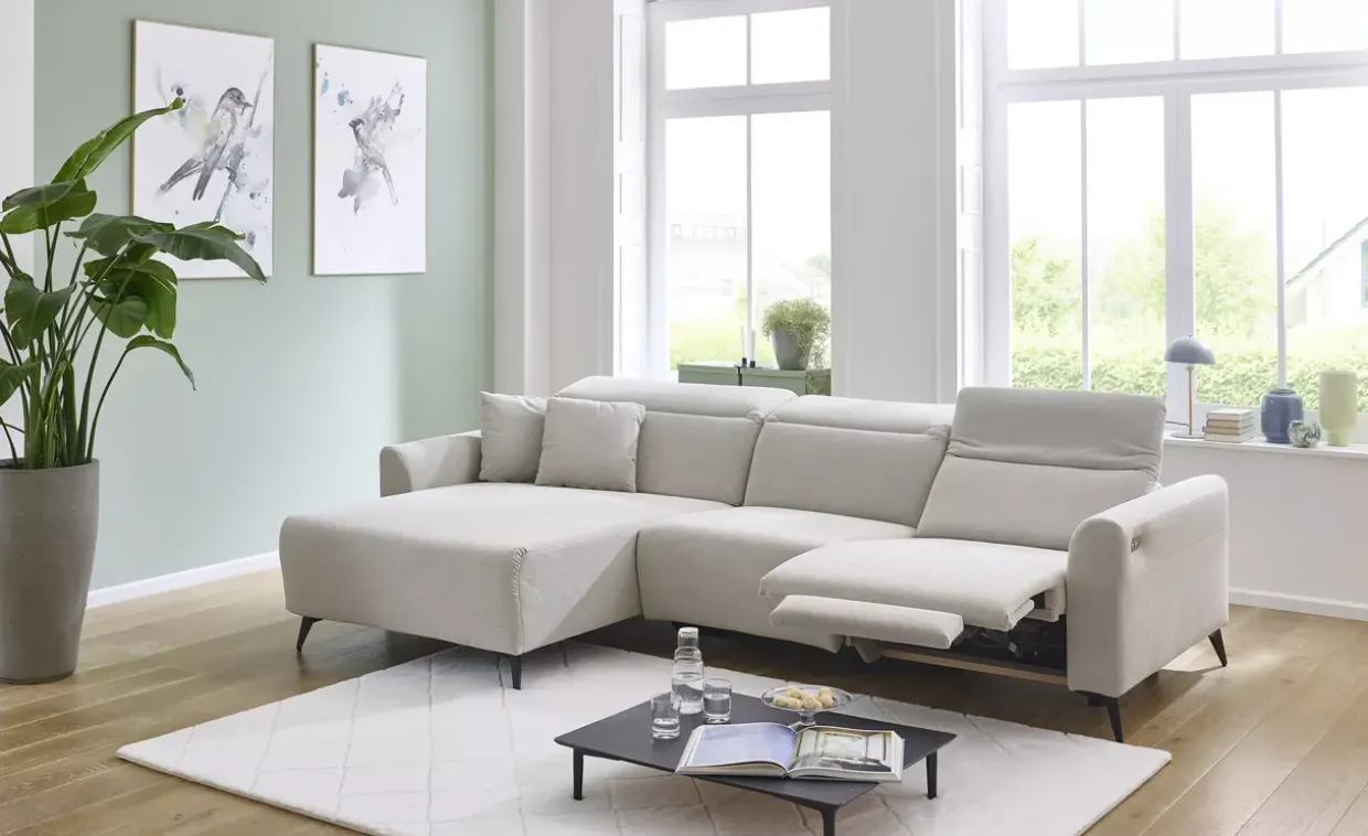 Inklusive Kopfteilverstellung bietet die Ten Polstergarnitur ein außergewöhnliches Maß an Komfort. Ein weiteres Highlight ist der elektrische Recliner, der es Ihnen ermöglicht, sich mit nur einem Knopfdruck in Ihre bevorzugte Entspannungsposition zu begeben.