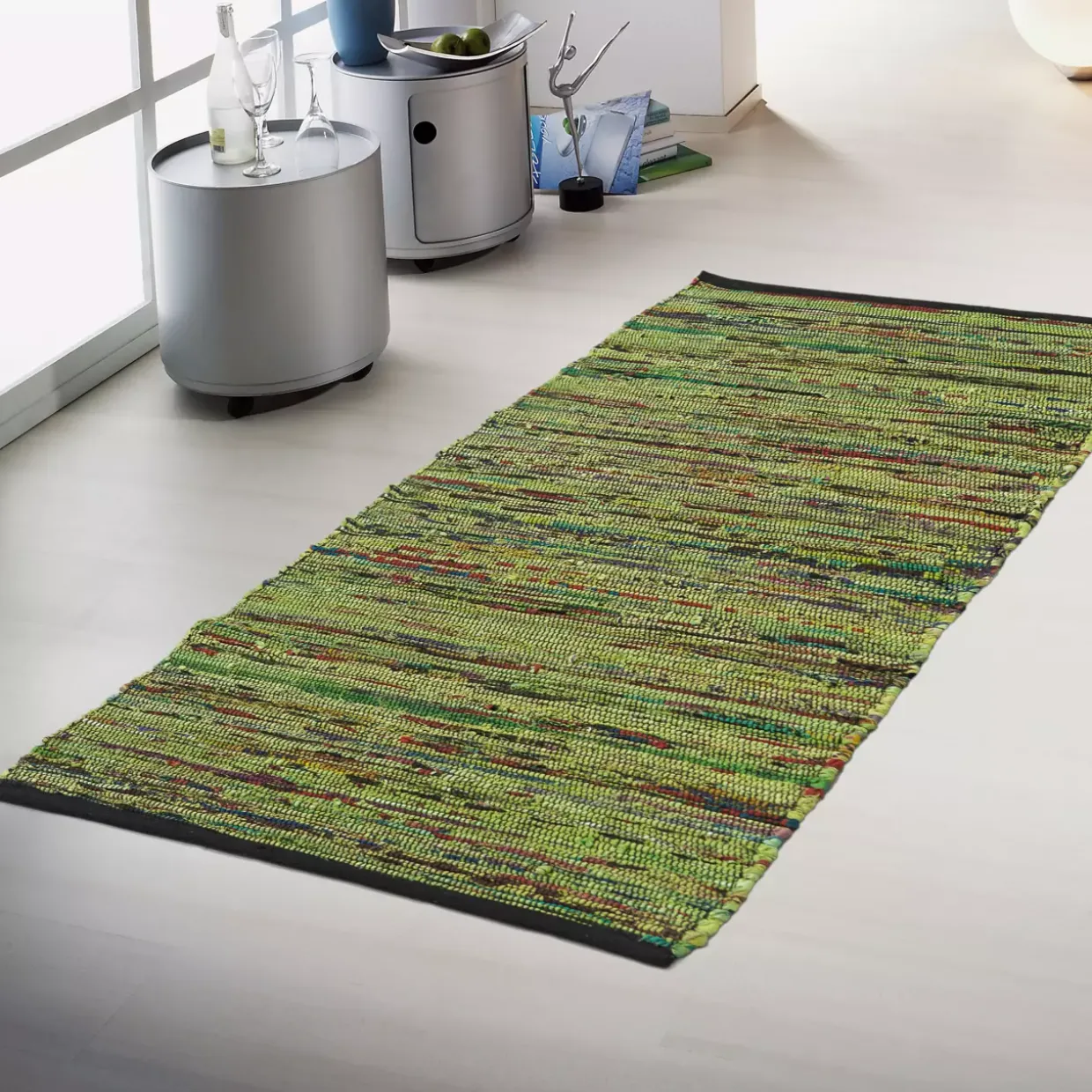 Handweb Farbton: Grün Größe: 80x150cm Textilart: Baumwolle 80% / sonstige Fasern 20% bestehend aus: 1 Teppich Chindi overdyed Stil: Konventionell Material: Textil Flächengewicht: 1500 Highlights