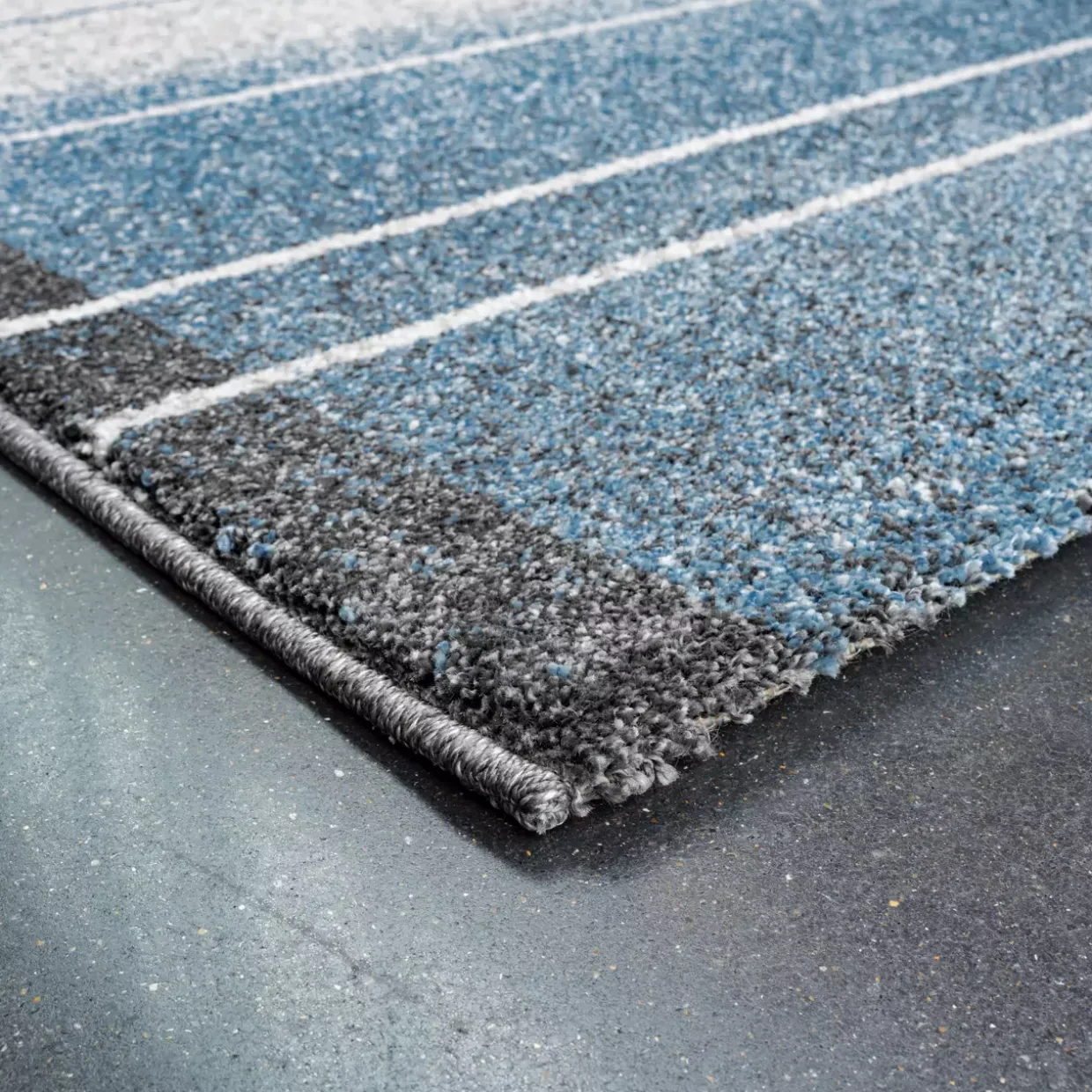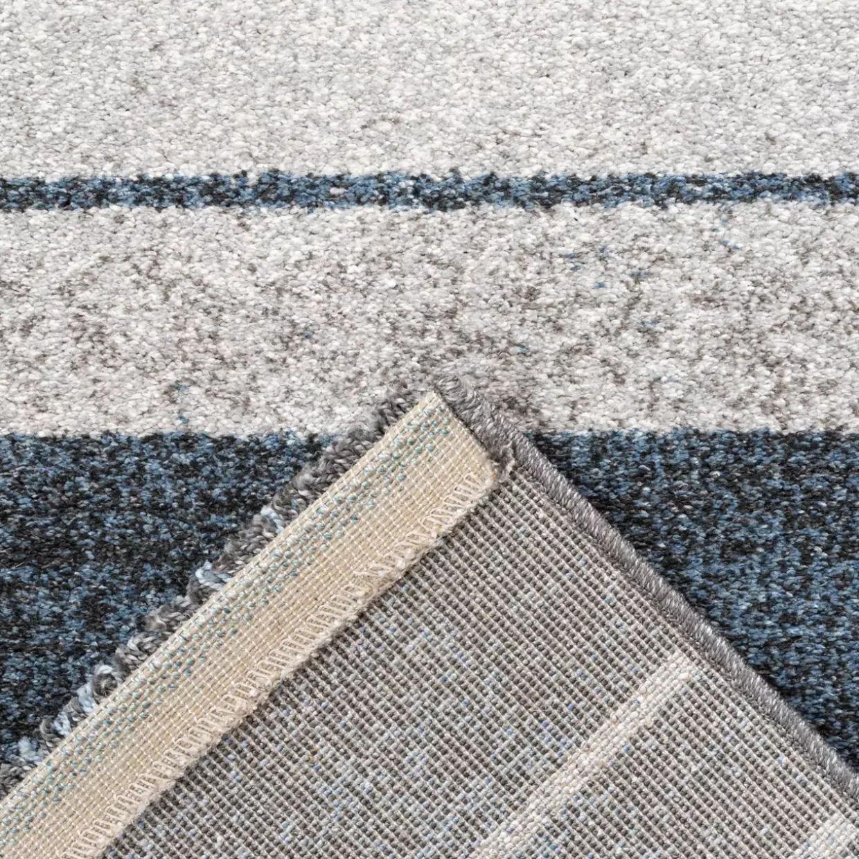Abstrakte Muster und Motive verleihen dem Memphis-Design eine besondere Ausdruckskraft. Diese moderne Kreation, in einem raffinierten blau-grauen Farbton gehalten, bringt eine zeitlose Eleganz in Ihr Zuhause. Die Textilart Polypropylen steht für Robustheit und Langlebigkeit, sodass Sie lange Freude an diesem Produkt haben werden. Besondere Aufmerksamkeit verdient das Heatset Frisé-Verfahren, das dem Stoff eine angenehme Haptik und edlen Glanz verleiht.