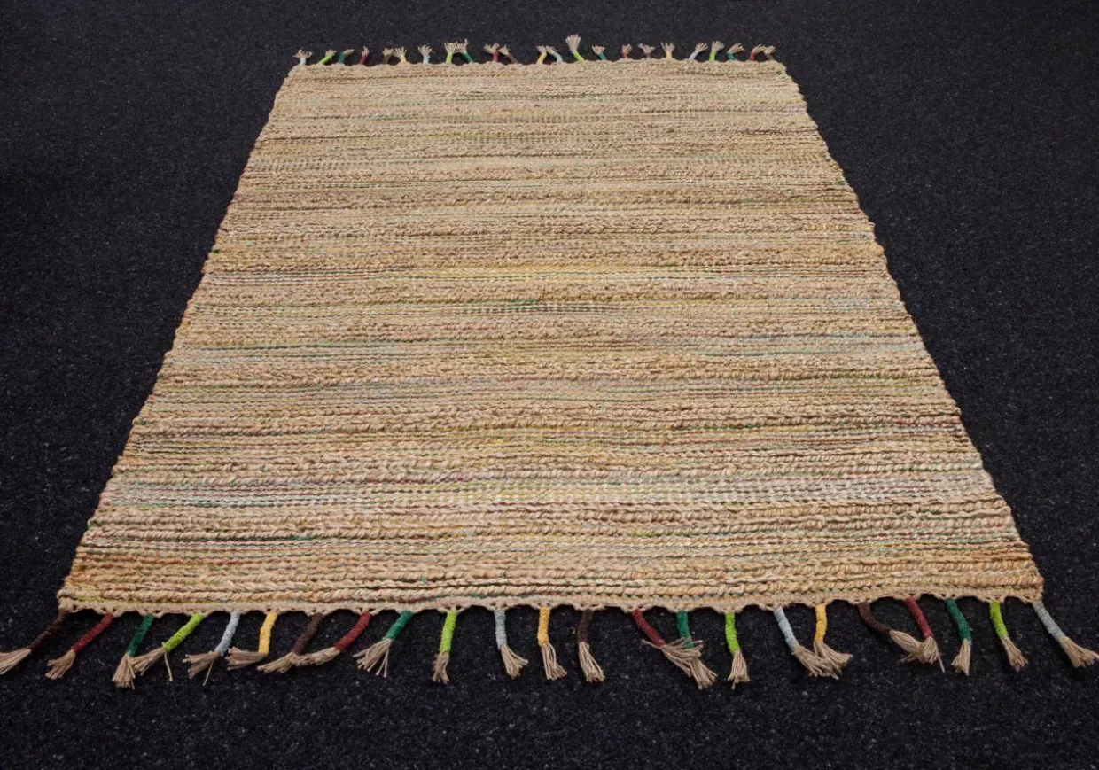Beidseitige Legbarkeit ist ein besonderes Highlight des Modells Merida. Dieses moderne Design kombiniert die natürliche Schönheit von Jute mit der luxuriösen Textur von Rayon-Kunstseide. Die dezente, beige Farbgebung fügt sich harmonisch in verschiedene Raumkonzepte ein und verleiht Ihrem Zuhause eine elegante Note.