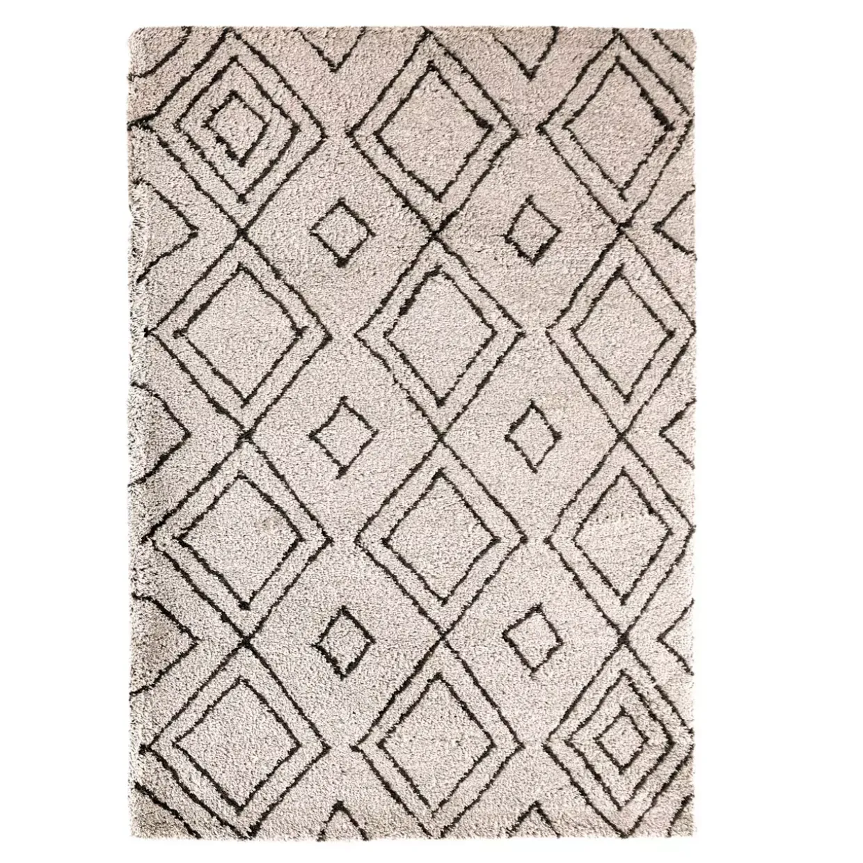 Geometrische Muster verleihen diesem Teppich einen modernen Touch, der sich harmonisch in jedes stilvolle Zuhause einfügt. Die dezente Farbgebung in Beige und Schwarz sorgt für eine zeitlose Eleganz, die vielfältig kombinierbar ist. Eine Kombination aus Baumwolle und Polyester bietet nicht nur ein angenehmes Gefühl unter den Füßen, sondern auch eine robuste Qualität, die den täglichen Herausforderungen standhält.
