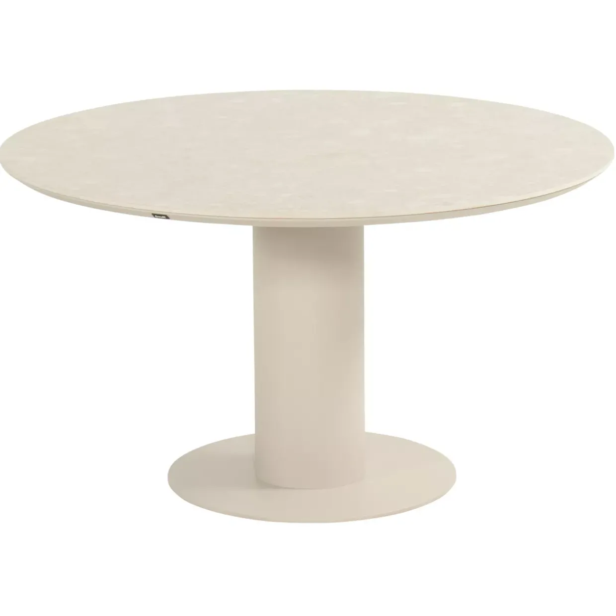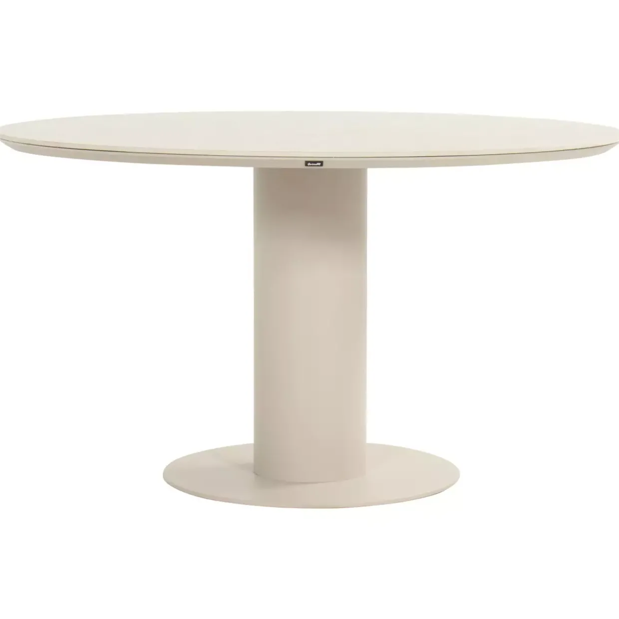 Die runde Form dieses Tisches strahlt zeitlose Eleganz aus und fügt sich harmonisch in jeden Raum ein. Mit einem Durchmesser von 120 cm bietet er ausreichend Platz für gemütliche Zusammenkünfte. Die konventionelle Stilrichtung verleiht ihm eine klassische Note, während die beige Farbgebung für eine warme Atmosphäre sorgt.Gefertigt aus einer Kombination von Aluminium und Keramik, vereint dieser Tisch Robustheit mit ästhetischem Anspruch. Das Aluminium sorgt für Stabilität und Leichtigkeit, während die Keramikoberfläche durch ihre Kratzunempfindlichkeit besticht. Besonders hervorzuheben ist die wetterfeste Eigenschaft des Tisches, die ihn sowohl für den Innen- als auch für den Außenbereich geeignet macht.Die Säulenfußform verleiht dem Tisch nicht nur Stabilität, sondern auch eine ansprechende Optik. Pflegeleichtigkeit gehört zu seinen weiteren Vorzügen, was den Alltag erheblich erleichtert. Sie können sich also darauf verlassen, dass dieser Tisch nicht nur durch seine Funktionalität, sondern auch durch seine einfache Handhabung überzeugt.Ob im Esszimmer, auf der Terrasse oder im Garten – dieser Tisch ist ein verlässlicher Begleiter für viele Gelegenheiten und lässt sich mühelos in verschiedene Wohnkonzepte integrieren. Vertrauen Sie auf ein Produkt, das Stil und Praktikabilität in sich vereint.