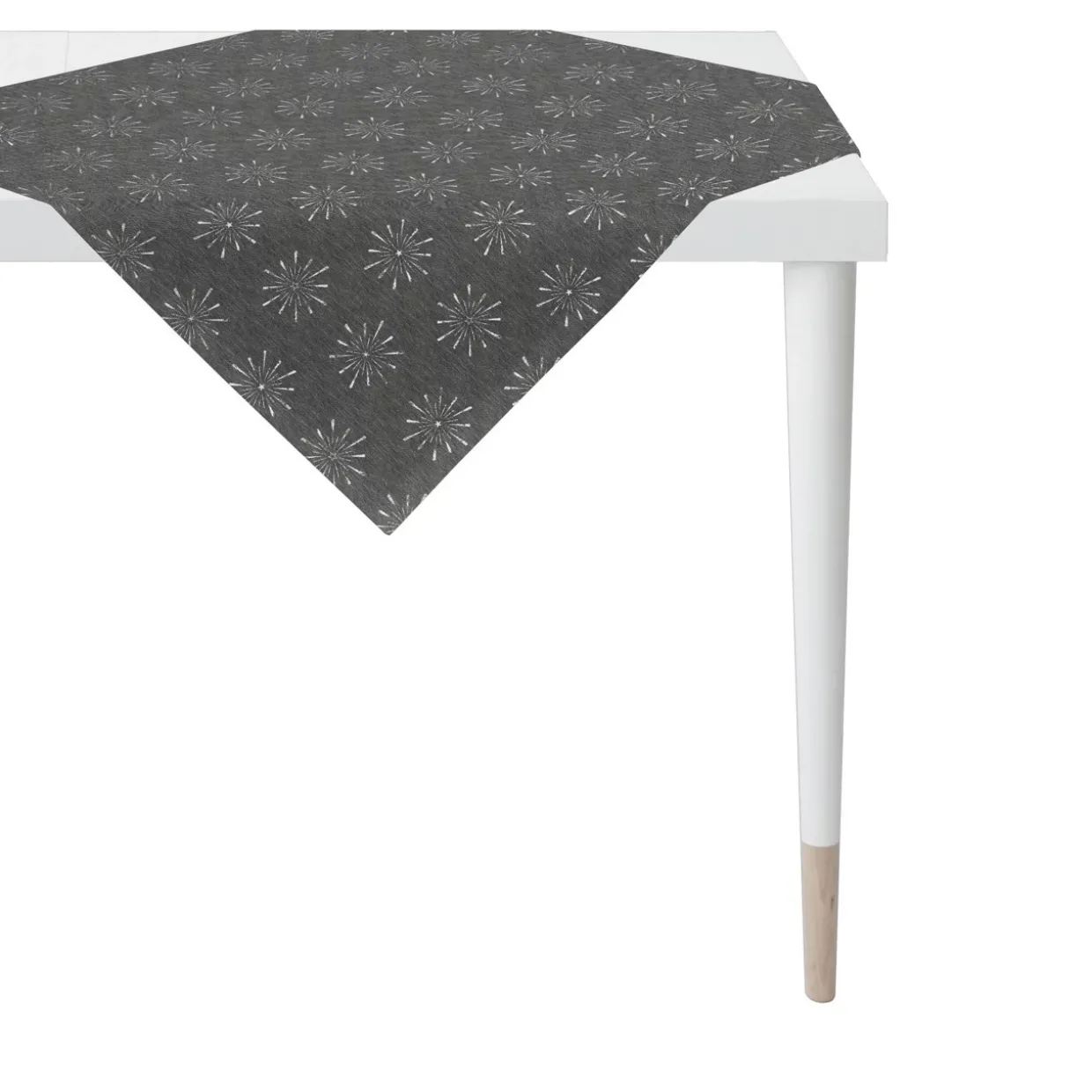 Ein Hauch von Glamour zieht mit dieser quadratischen Tischdecke in Ihr Zuhause ein. Die elegante Kombination aus anthrazit- und silberfarbenem Design verleiht Ihrem Tisch eine festliche Note, ideal für die Weihnachtszeit. Das Modell 6302 von 85×85 cm beeindruckt durch sein raffiniertes Stern-Muster, das aus hochwertiger Synthetikfaser gefertigt wurde.
