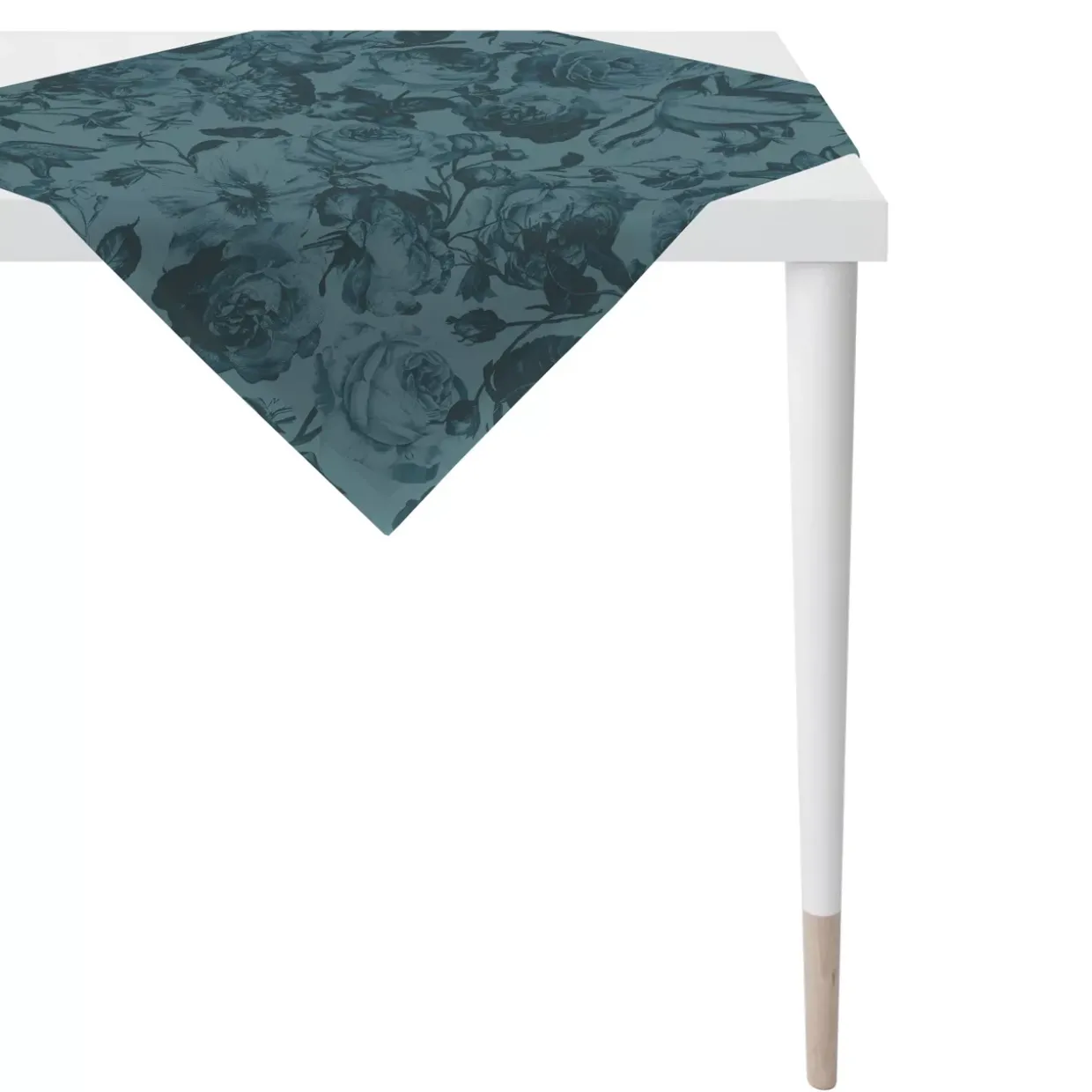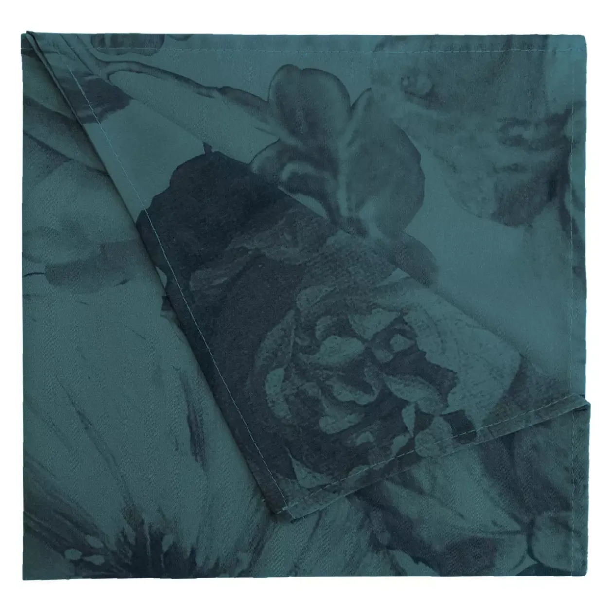 Ein Hauch von Cottage-Charme zieht mit dieser Tischdecke in Ihr Zuhause ein. Die dezente petrolfarbene Baumwolle strahlt eine zeitlose Eleganz aus und fügt sich harmonisch in jedes Ambiente ein. Das florale Muster verleiht dem Raum eine frische und lebendige Note, ideal für eine gemütliche Atmosphäre am Esstisch.